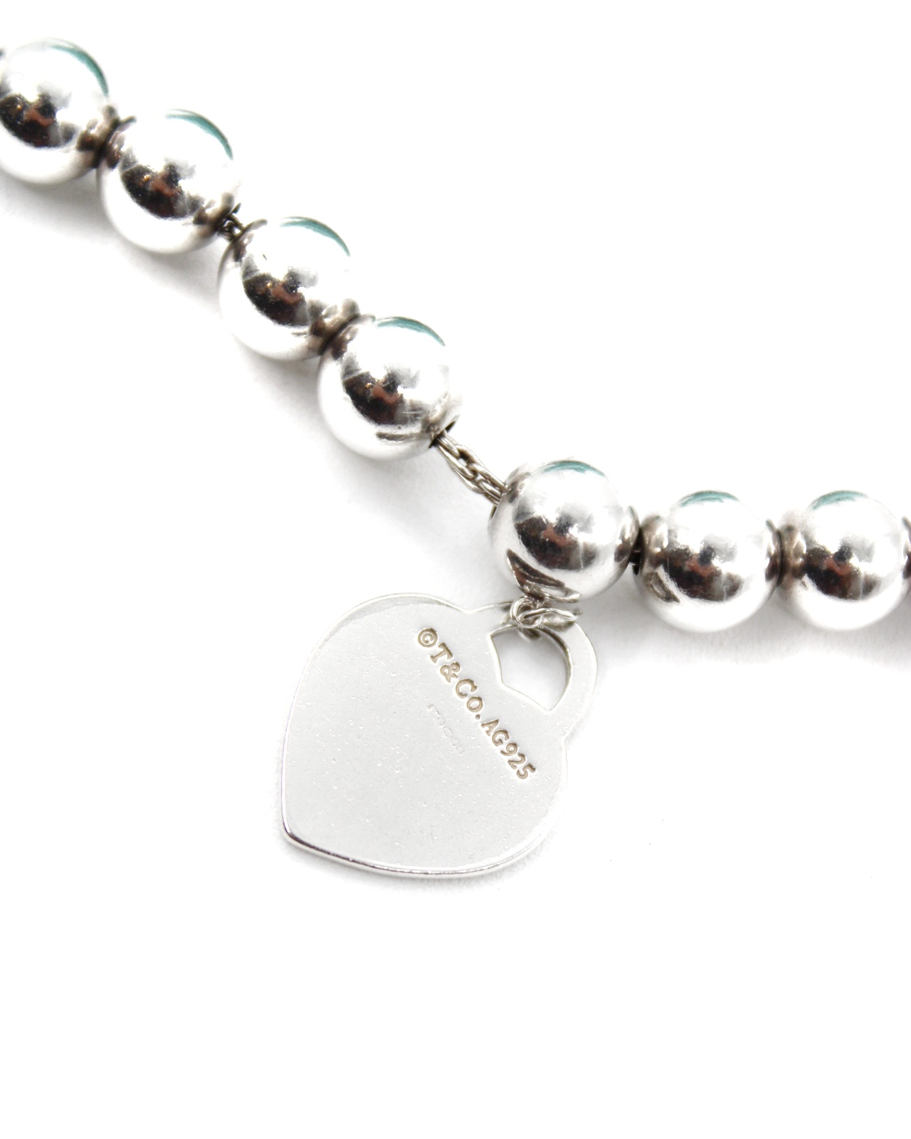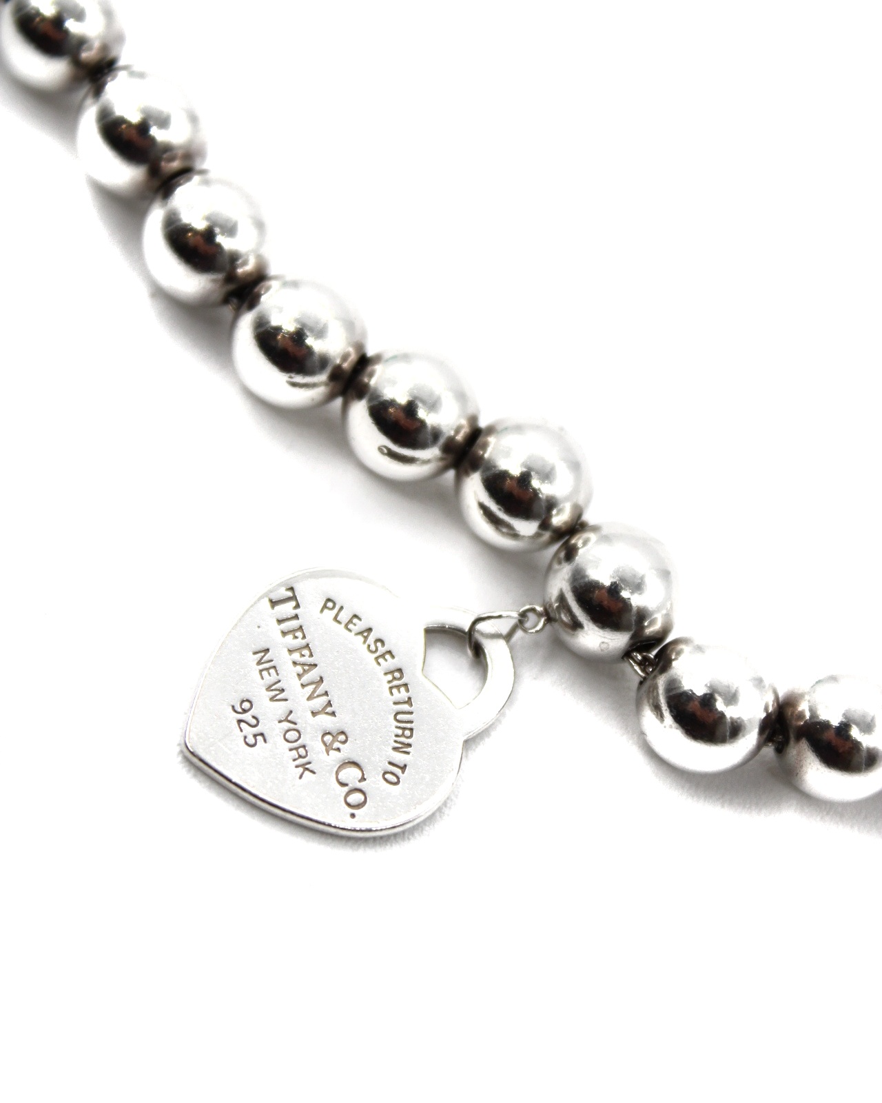 Bracciale Tiffany in argento con sfere da 8 MM e pendente cuore piccolo ( 1,5x2 cm) . Lunghezza 18 cm corredato da dust. Articolo in ottime condizioni.