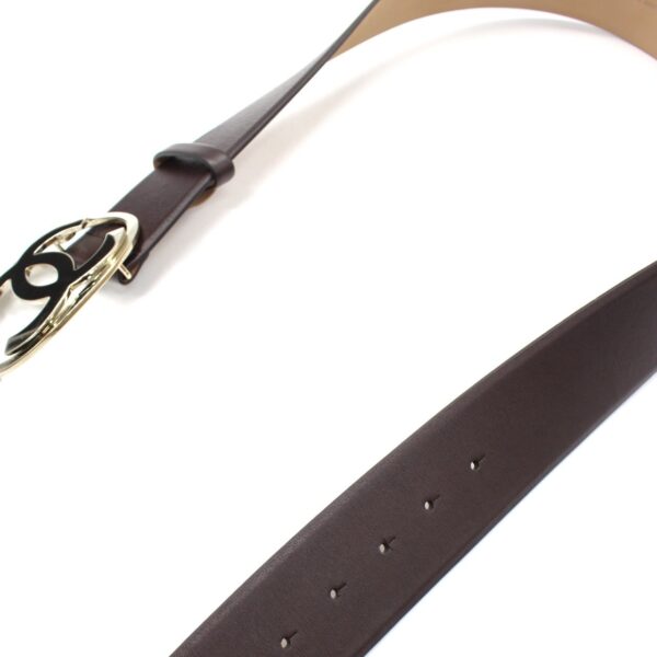 Cintura Chanel In Pelle Marrone e parti metalliche dorato. Misura 85 cm e alteza 5 cm. Condizioni eccellenti corredata di scatola