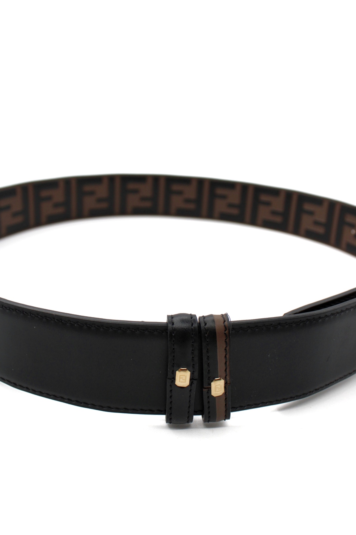 Cintura Fendi reversibile in pelle nera liscia/ pelle monogram . Misura 85 altezza 4 cm. Articolo in condizioni eccellenti completo di dust e cartellini.