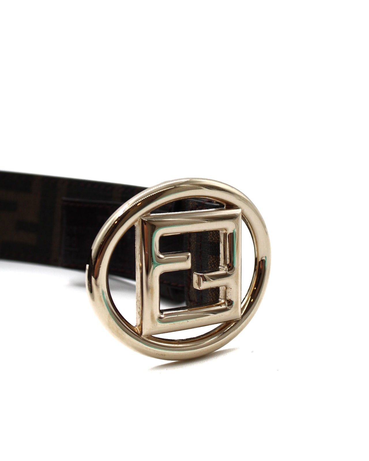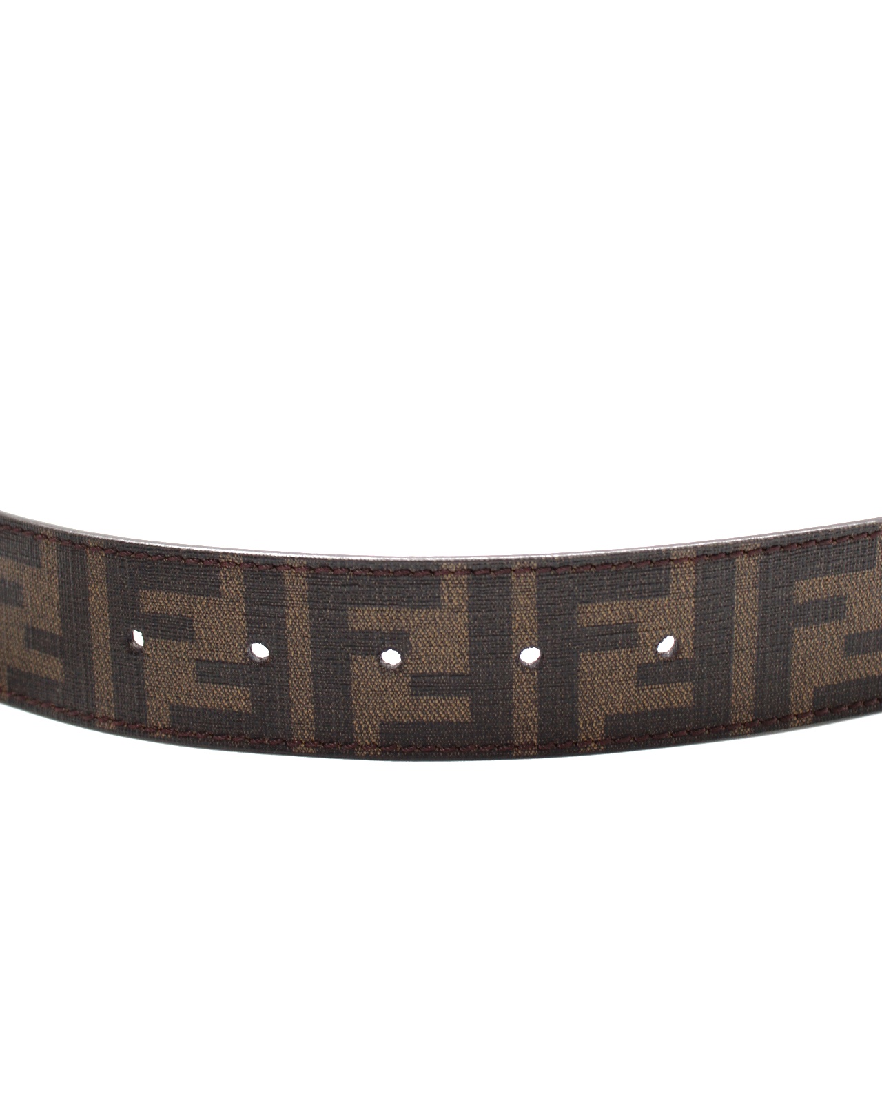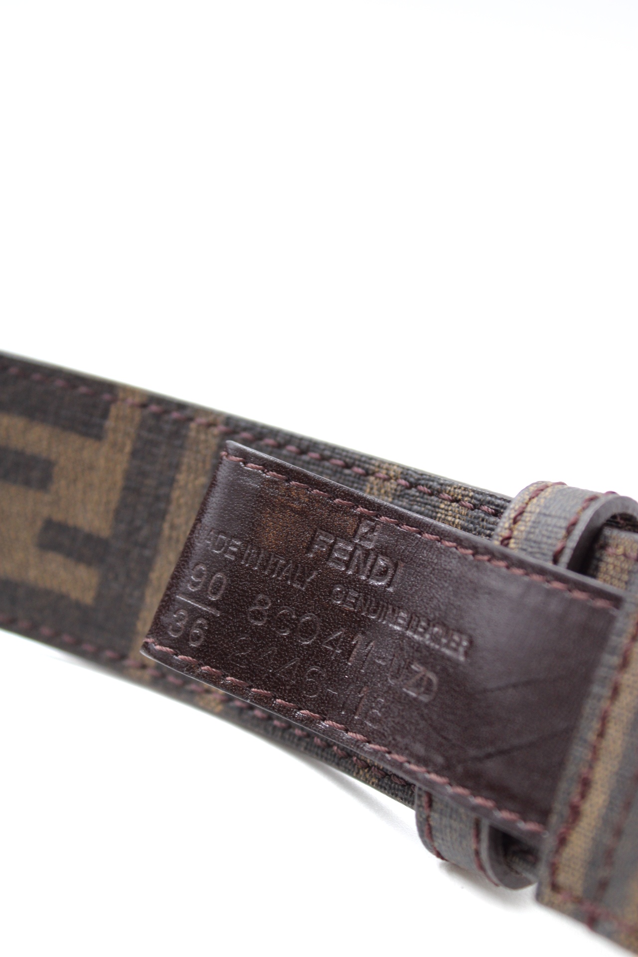 Cintura Fendi FF zucca in tla plastificata e hardware dorato. Misura 90 altezza 4 cm . Articolo in ottime condizioni completa di dust.