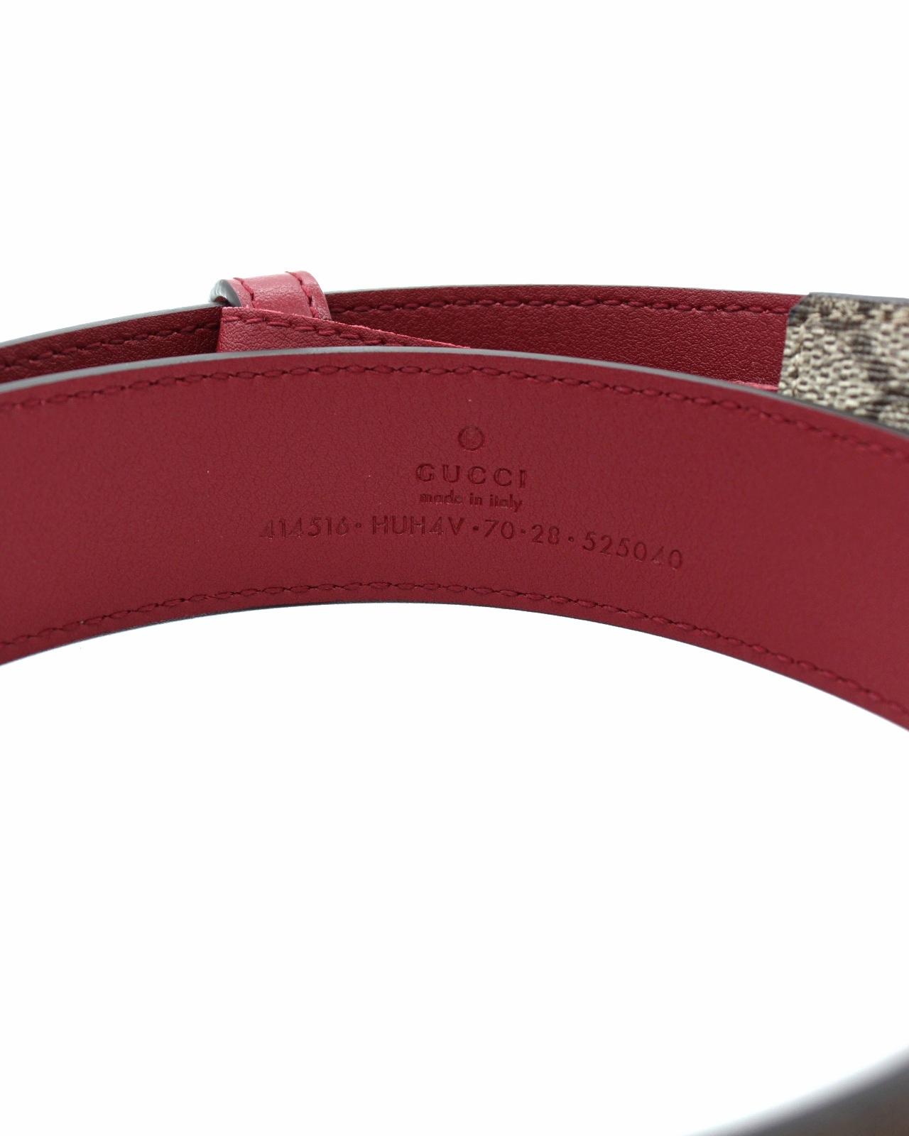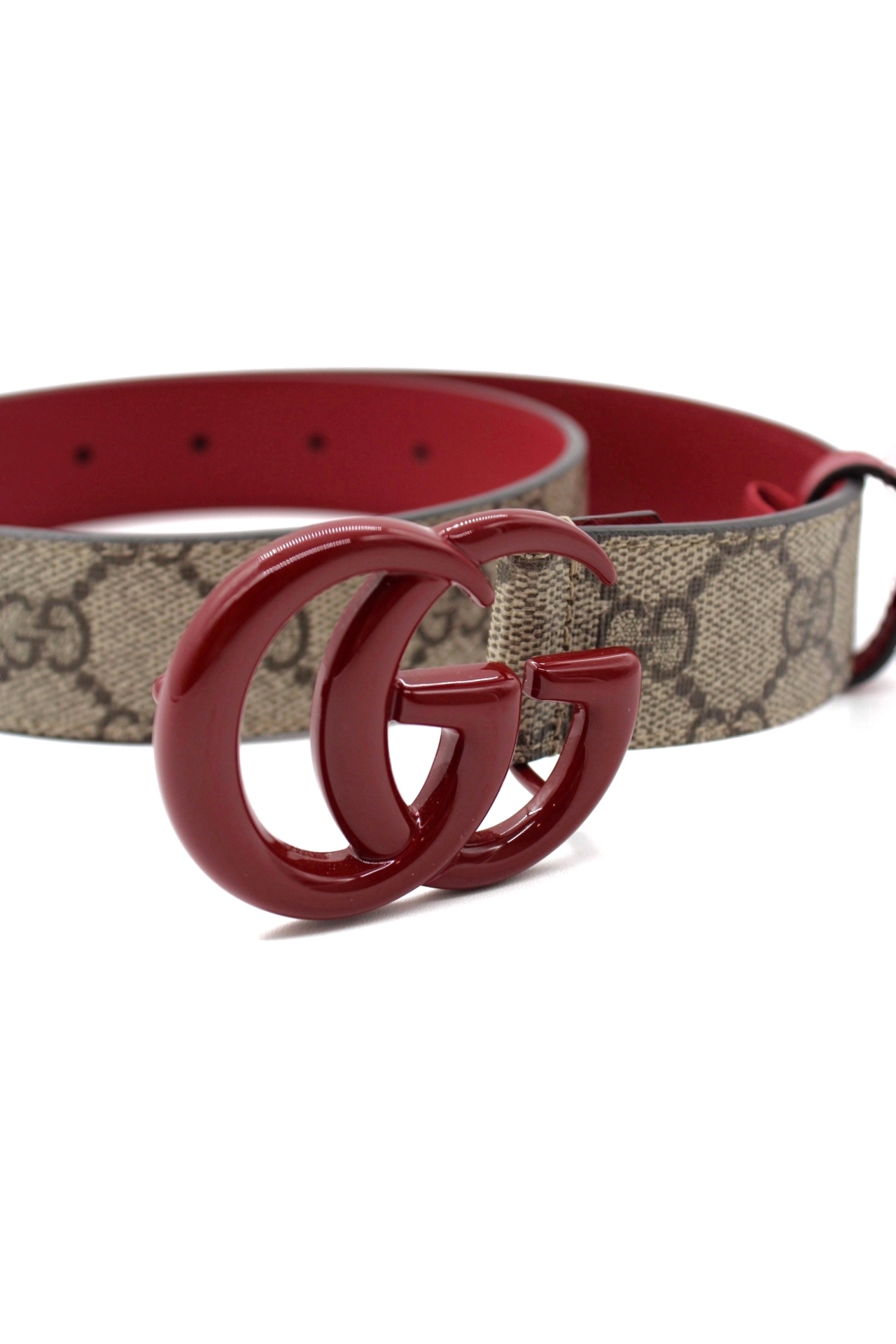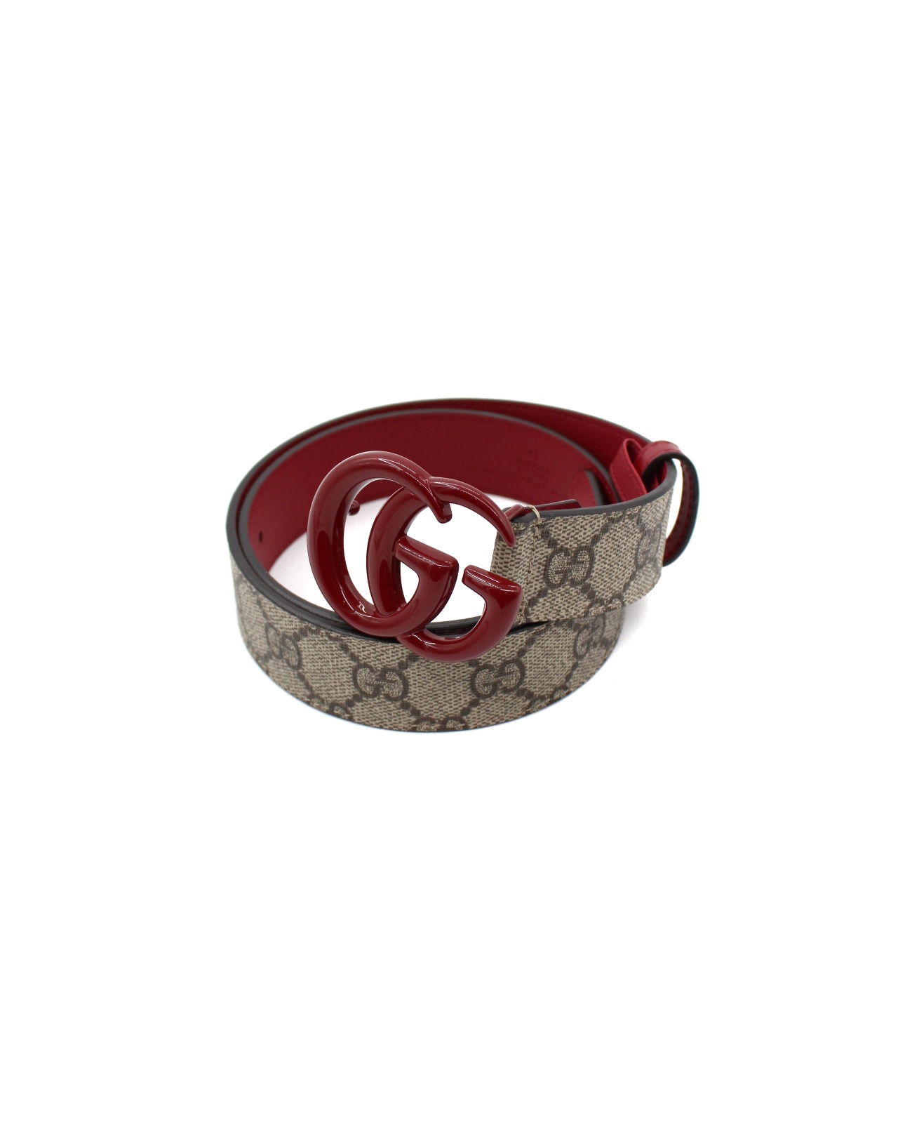 Cintura Gucci in tela GG supreme e pelle bordeaux. Logo GG smaltato bordeaux . Altezza cintura 3 cm misura 70. Articolo in condizioni eccellenti completo di dust e cartellini.