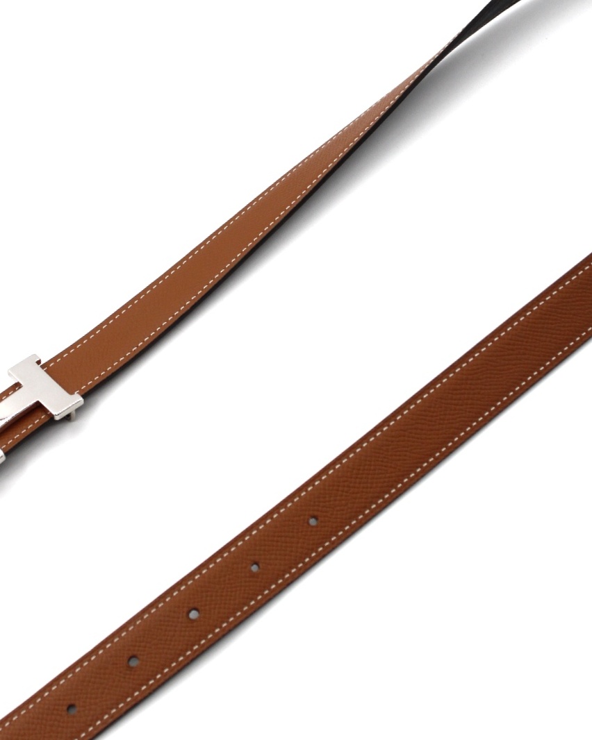 Cintura Hermès in pelle nera e marrone e parti metalliche argentate. Misura 85 altezza 2 cm.