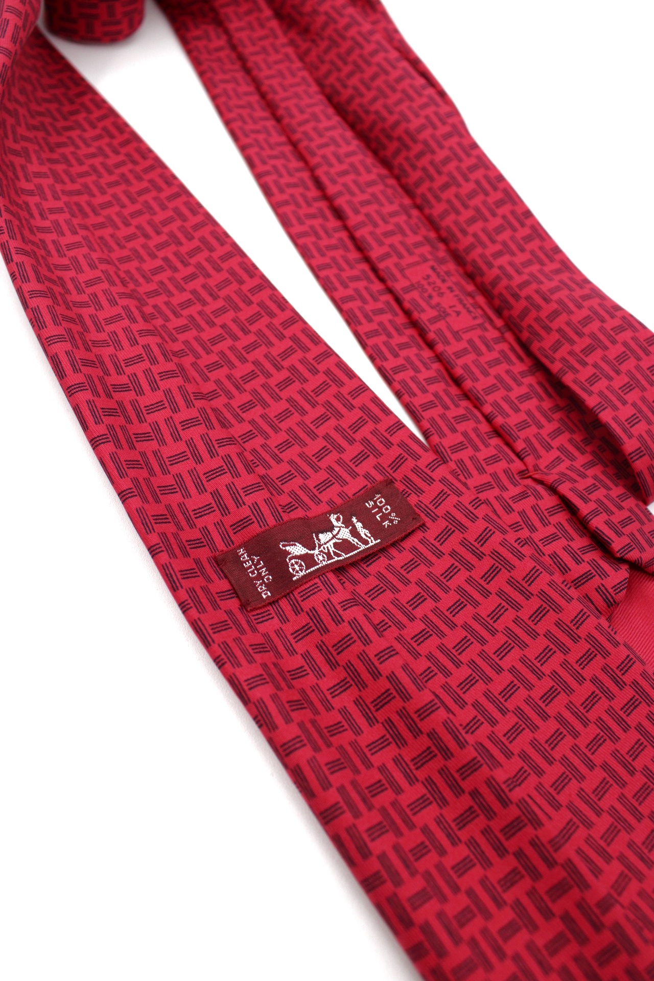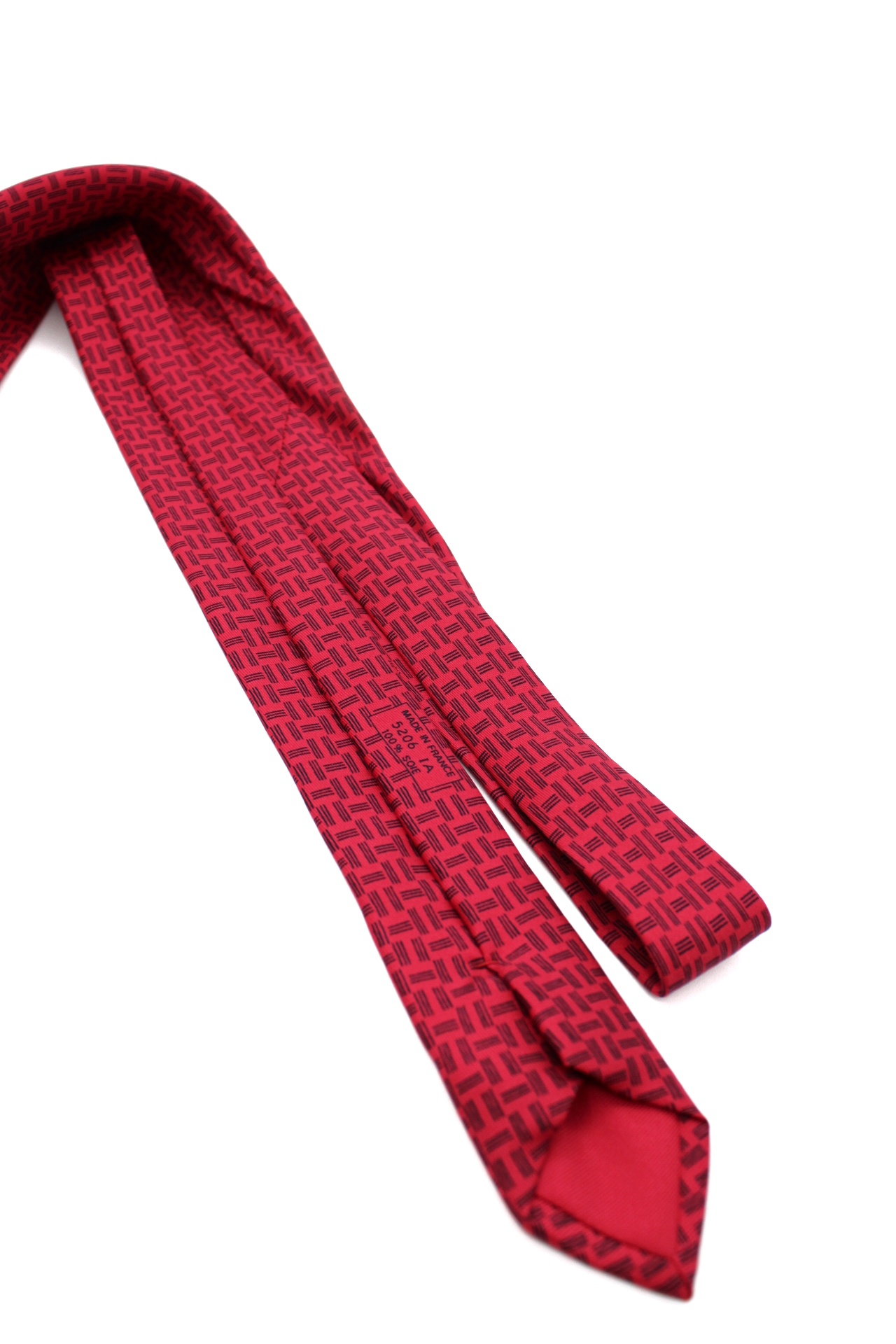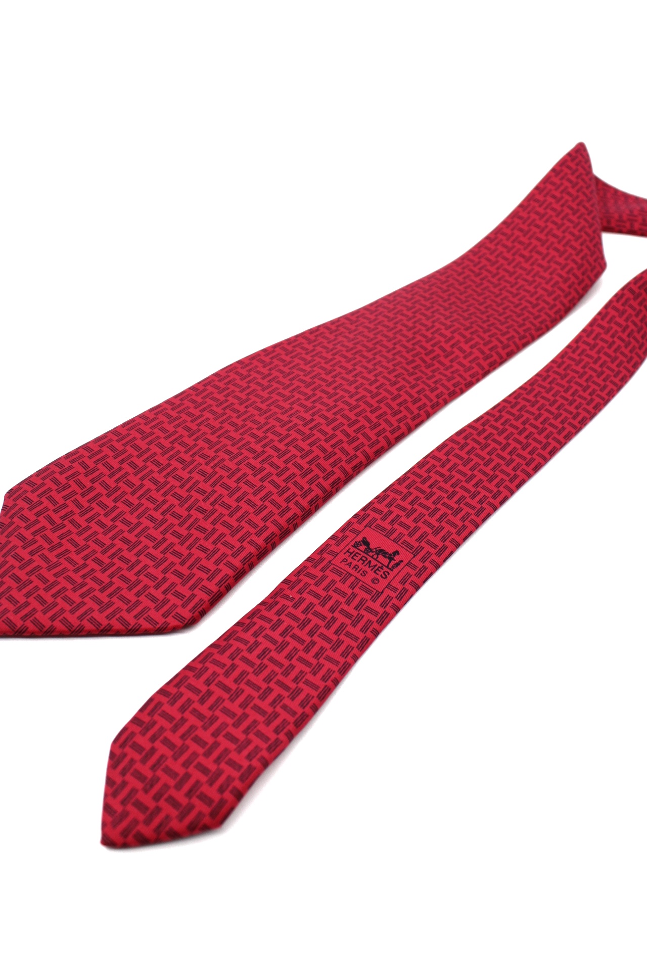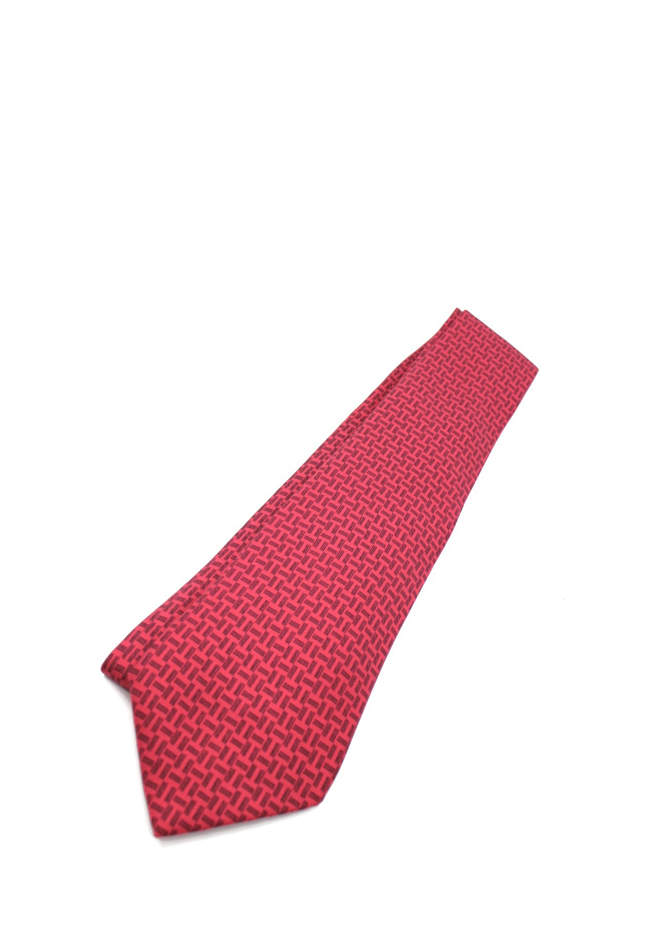 Cravatta Hermes in pura seta caratterizzata da una trama geometrica nera a contrasto. Articolo in condizioni eccellenti completo di dust Très Chic.
