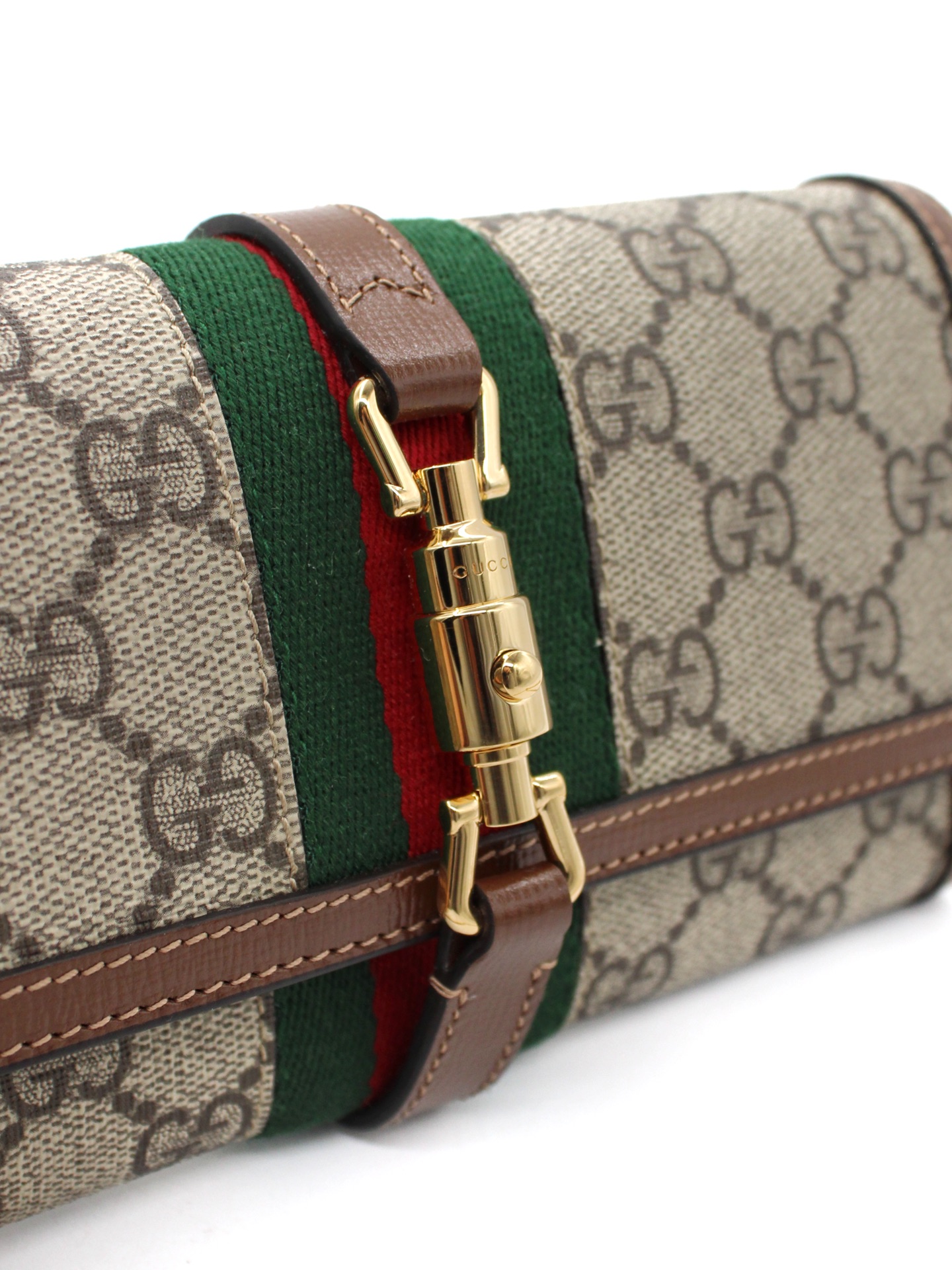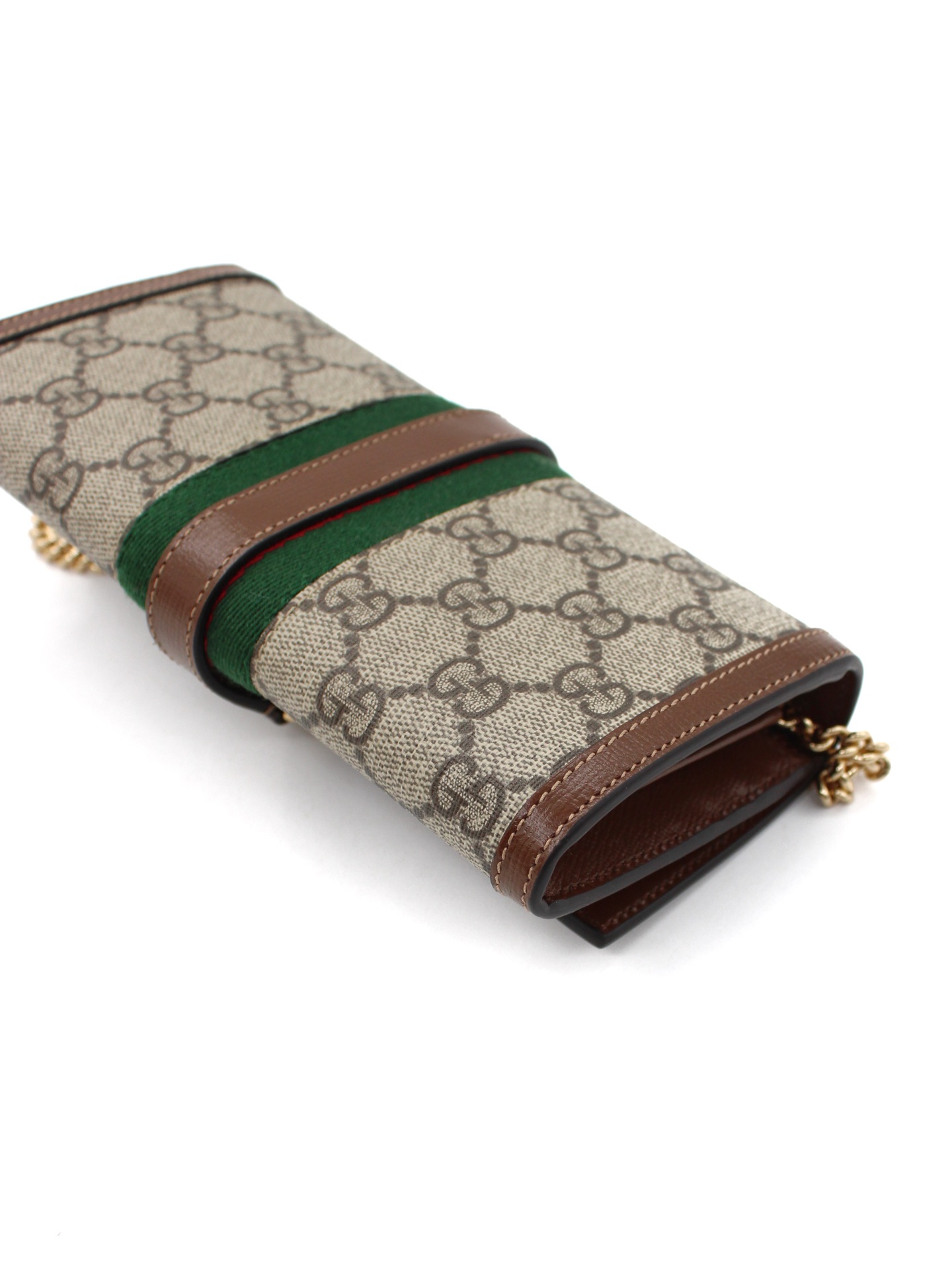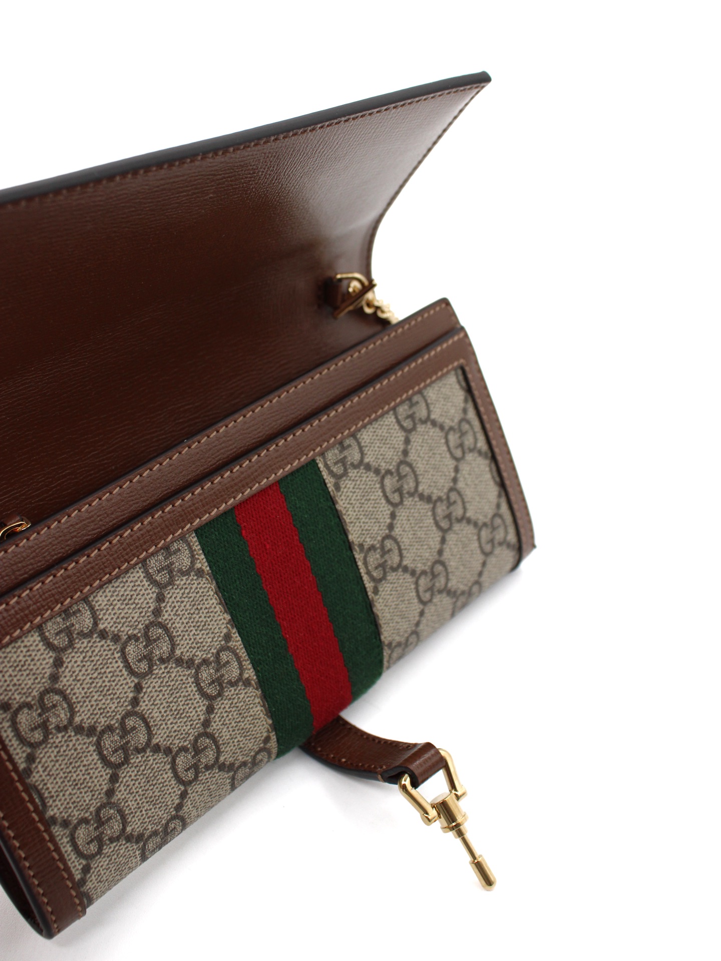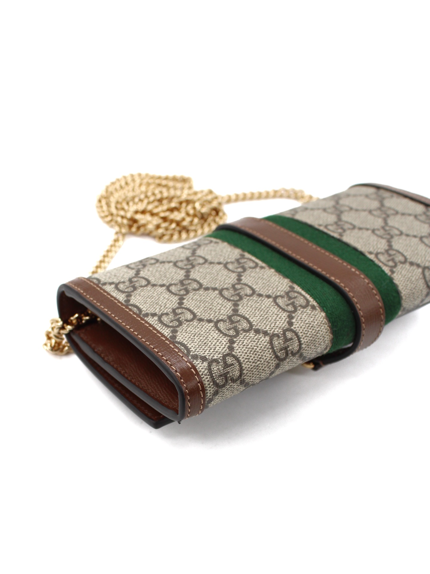 Gucci Jackie Wallet on Chain Ophidia con parti metalliche dorate. Da portare a tracolla questo wallet presenta diverse fessure per carte e uno scomparto con zip per le monete. Articolo pari al nuovo corredato di scatola e cartellini.
