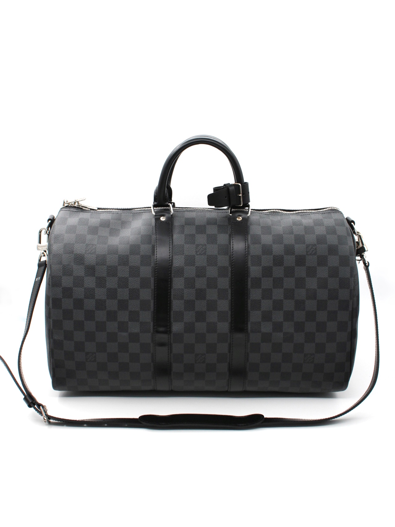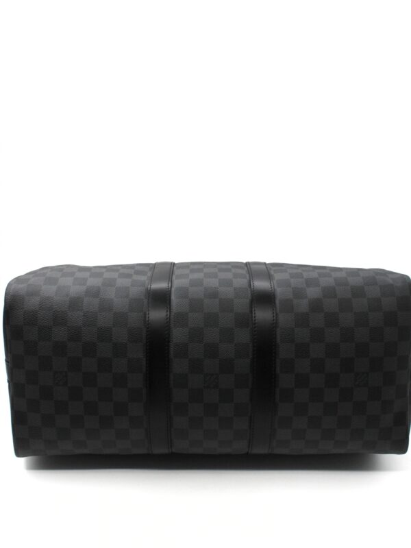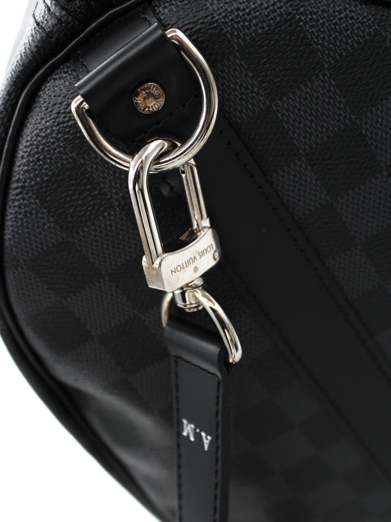 Keepall Louis Vuitton Bandouliere 45 in Damier Graphite e parti metalliche argentate. Da portare a mano oppure a spalla grazie alla sua tracolla regolabile e amovibile. Articolo in condizioni eccellenti con dust bag.