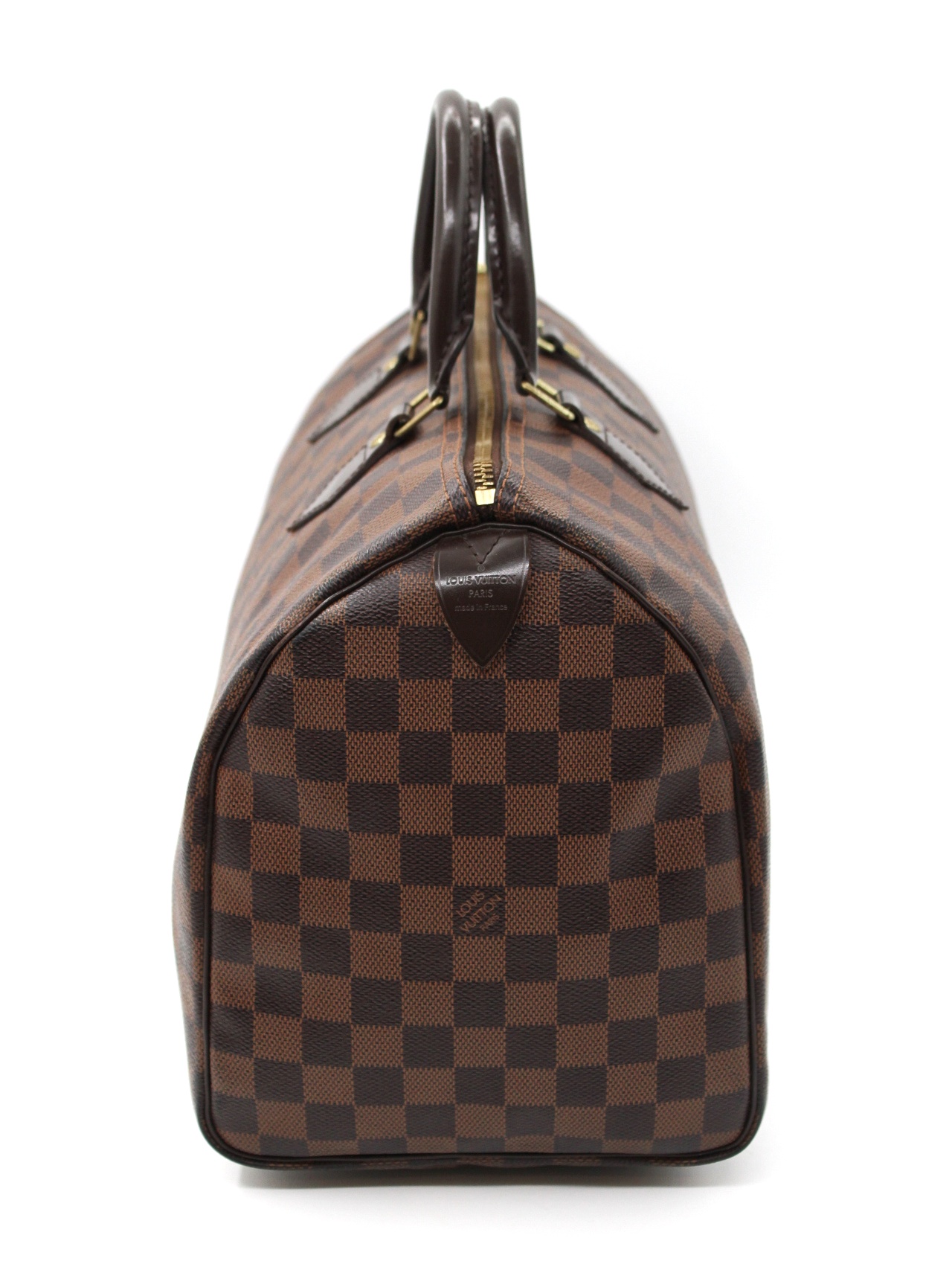Louis Vuitton Speedy damier 35 con parti metalliche dorate. Da portare a mano questa borsa è perfetta per tutti i giorni con outfit sia casual che ricercati. Articolo in condizioni ottime corredato di dust très chic