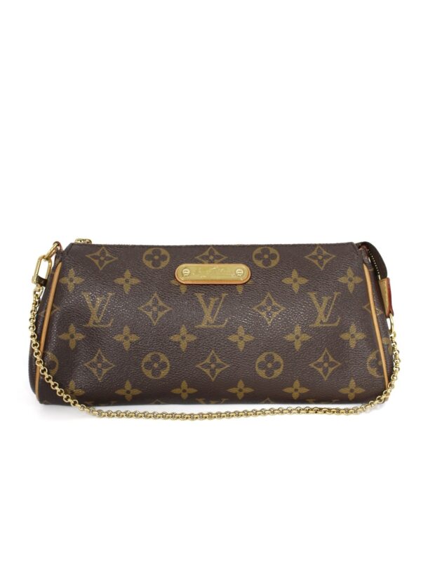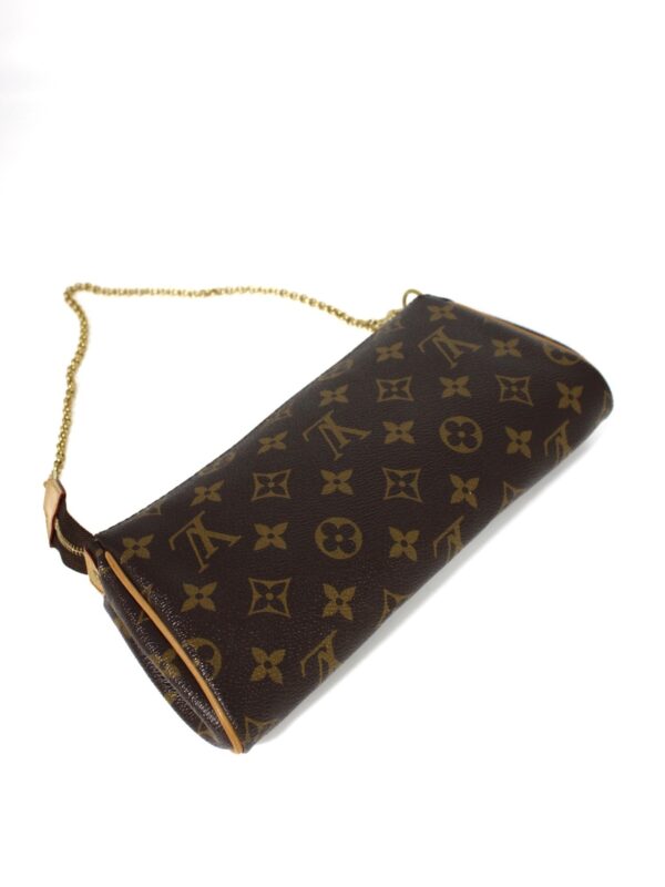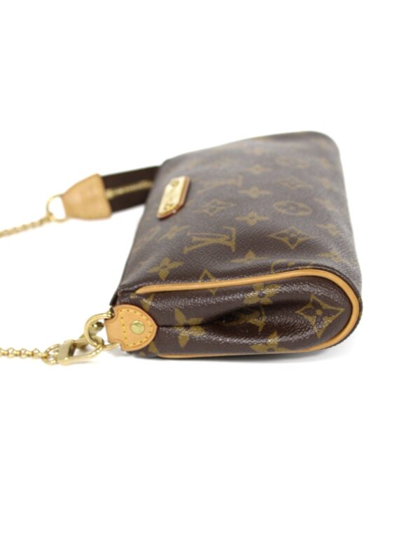 Pochette Louis Vuitton Eva con parti metalliche dorate. Da portare a mano oppure a spalla grazie alla sua tracolla amovibile. Perfetta per svariate occasioni questa borsa si adatta a vari tipi di outfit. Articolo in condizioni eccellenti corredato di scatola.