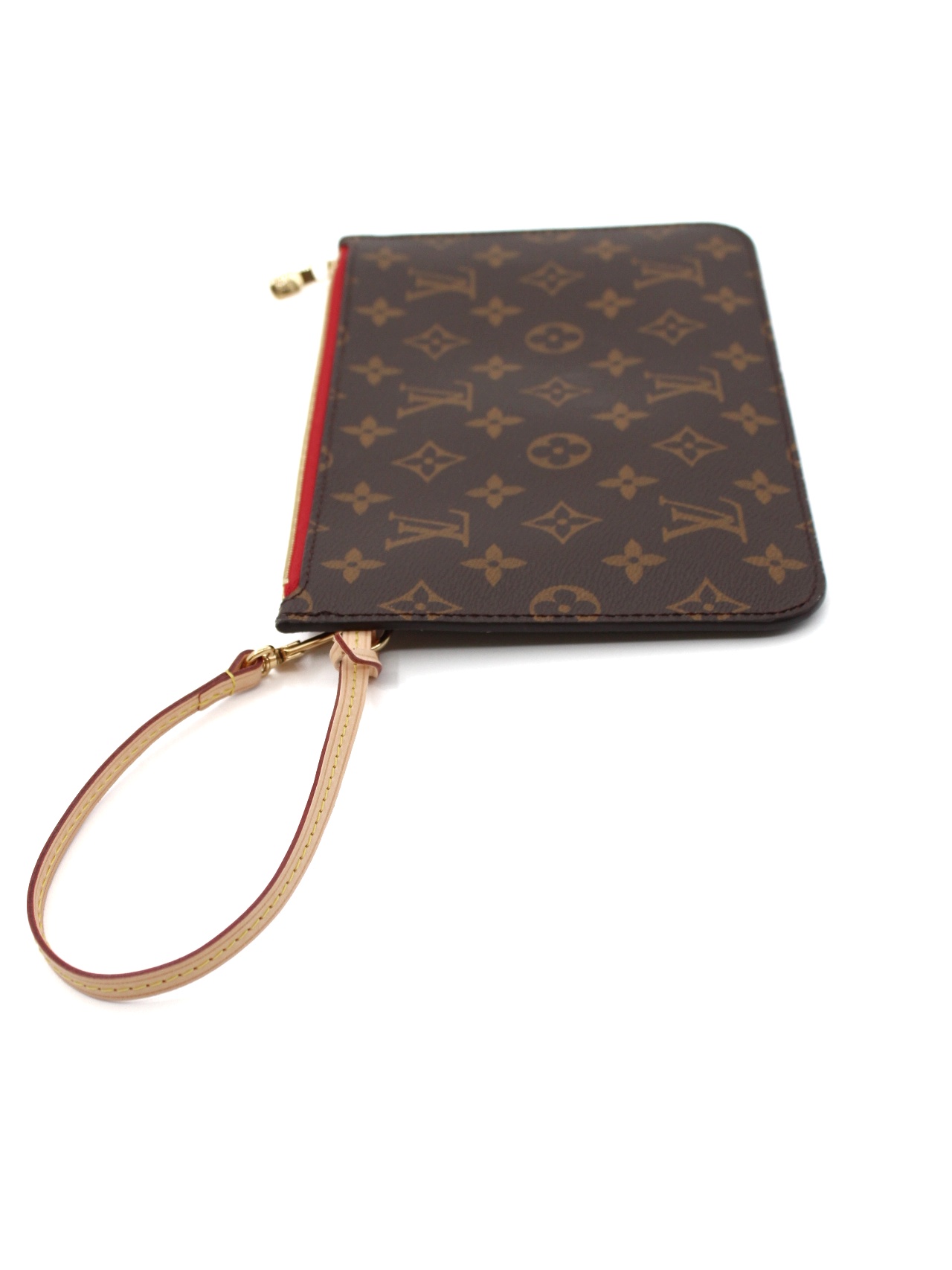 Pochette Louis Vuitton Monogram con parti metalliche dorate. Da portare a mano questa pochette è perfetta per svariate occasioni. Articolo in condizioni eccellenti.