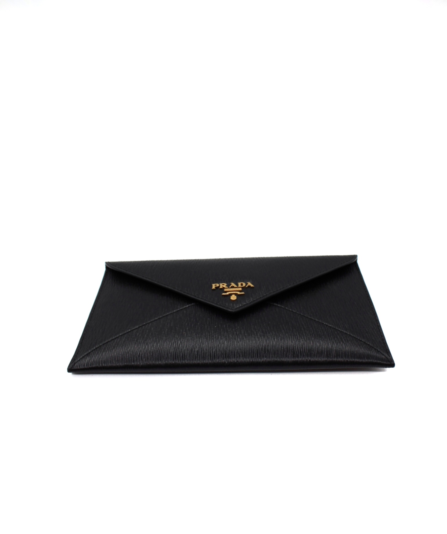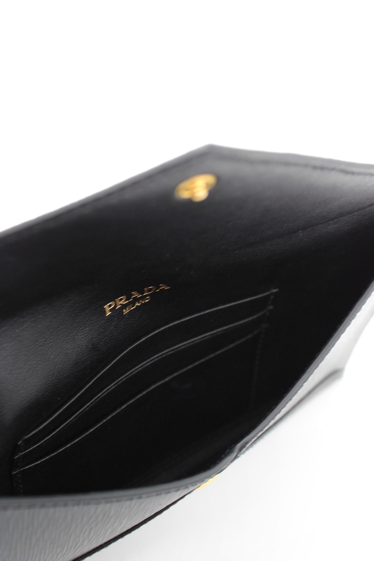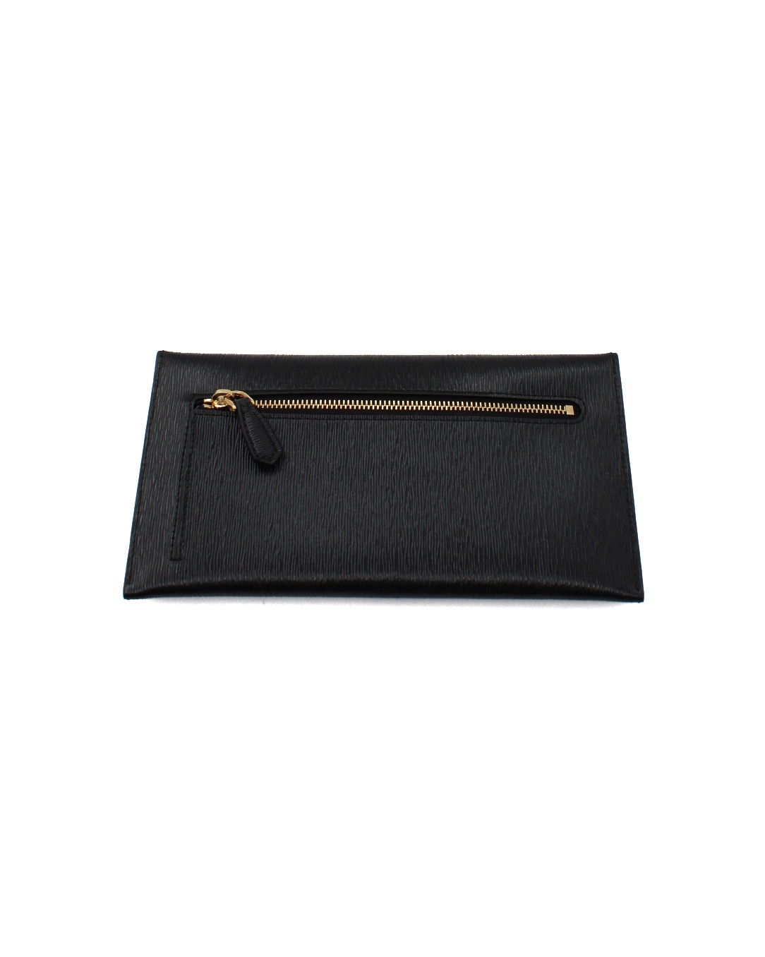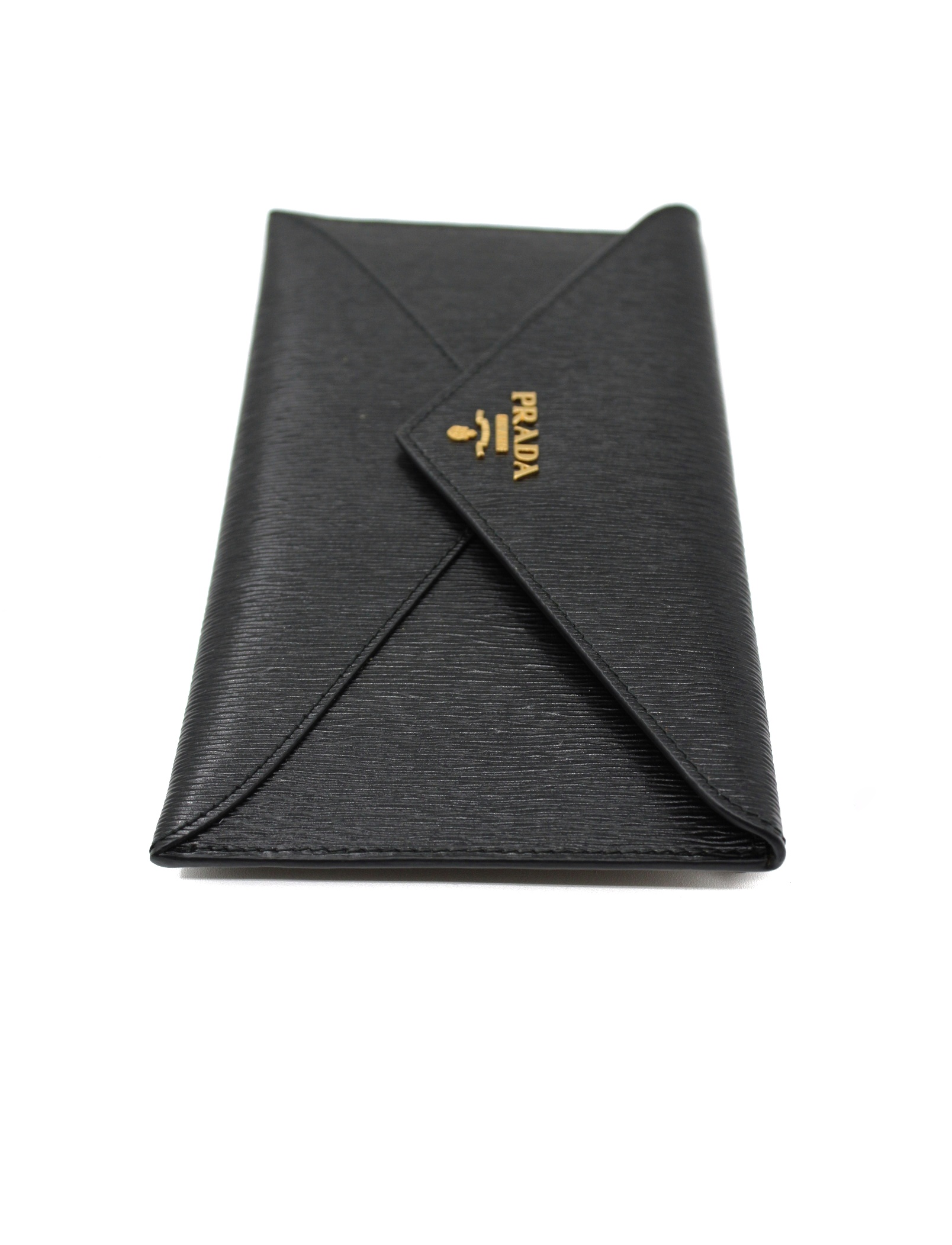 Pochette Prada in pelle di vitello move nero e hardware dorato. Dotata di slot portacarte ed una tasca esterna con zip. Misure L20xA11xP1 cm. Articolo in condizioni eccellenti completo di scatola e cartellini.