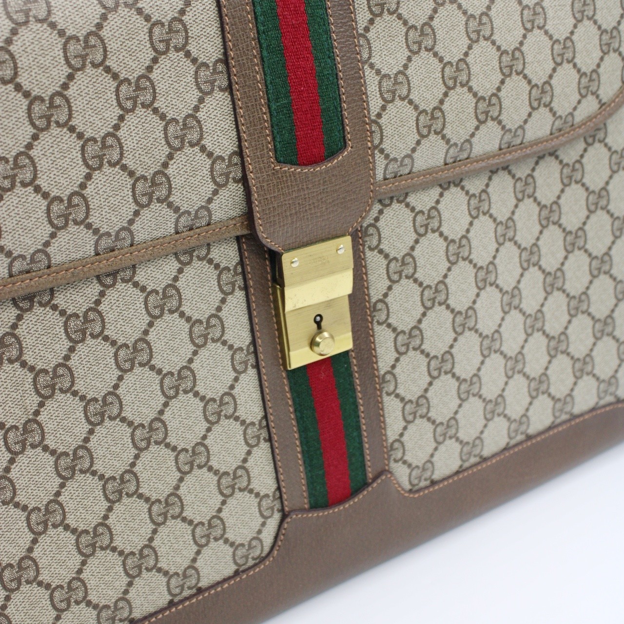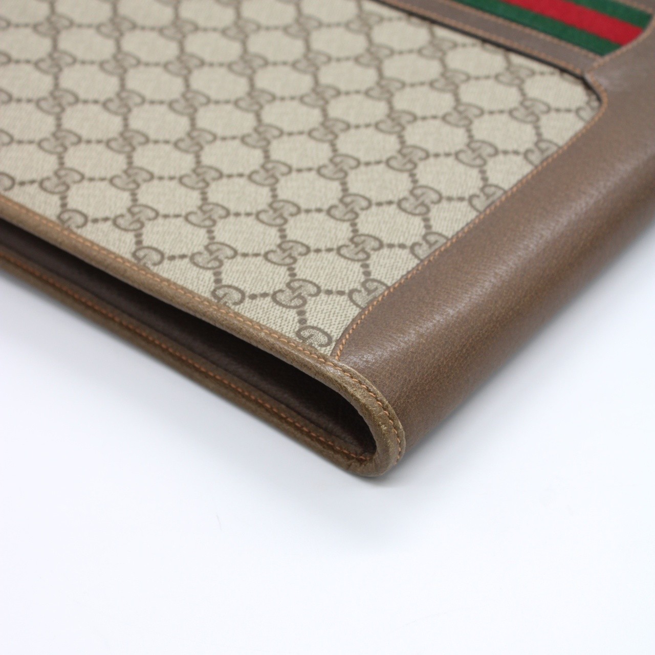 Porta Documenti Gucci web vintage in tela plastificata e pelle con parti metalliche dorate. Da portare a mano dona praticità per portare con se vari tipi di documenti. Articolo in ottime condizioni.