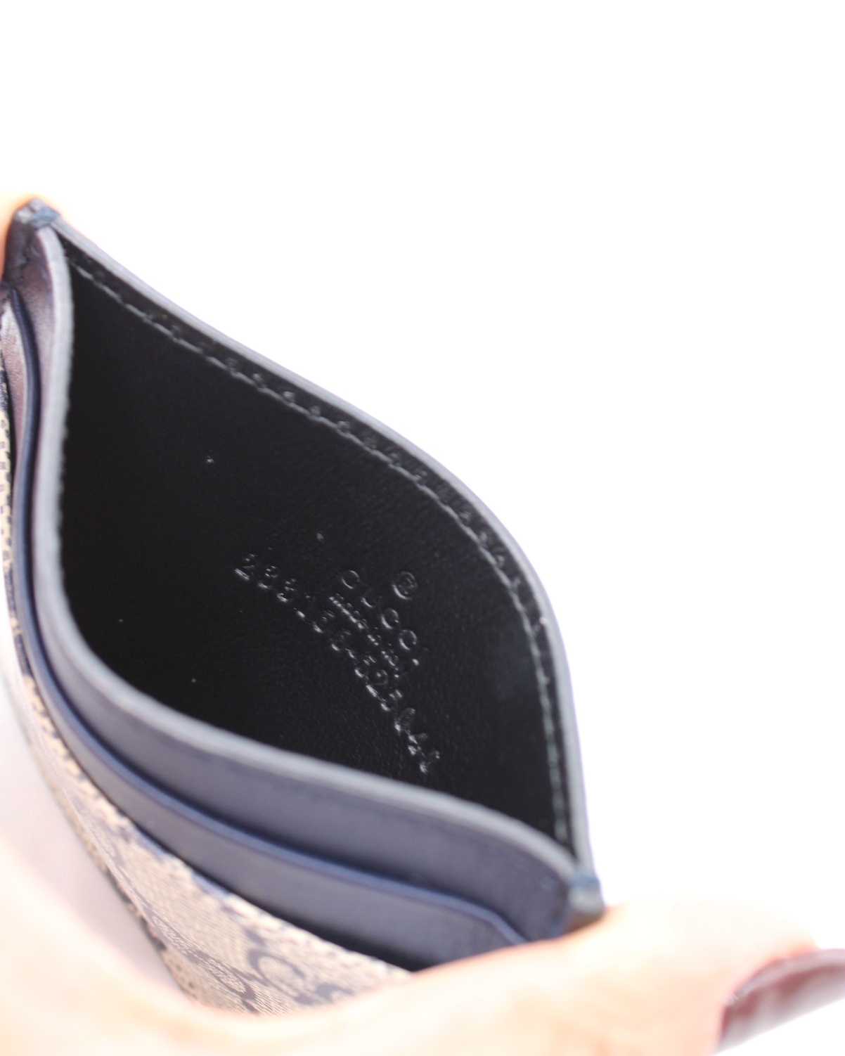 Porta Carte Gucci in pelle gommata blu . Misure 10x7 cm . Dotato di 5 fessure per carte. Articolo in condizioni eccellenti completo di dust Très Chic.