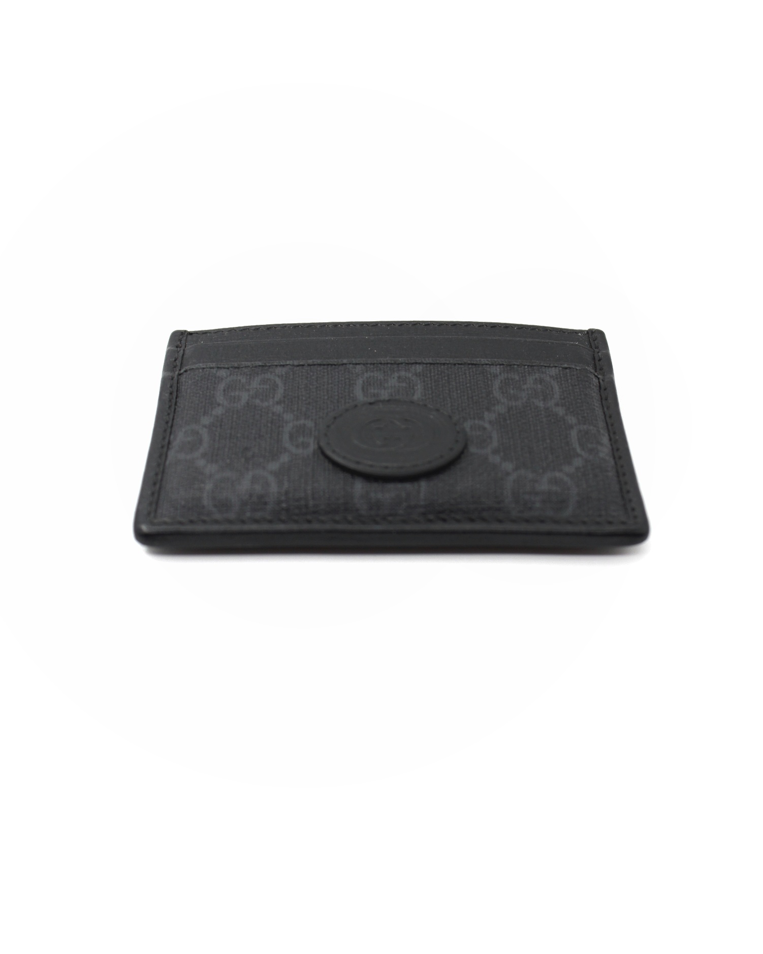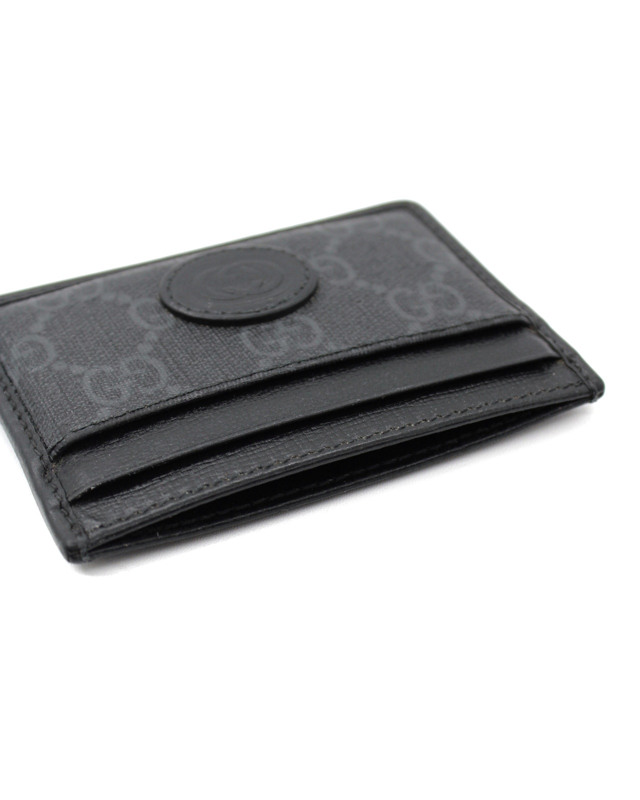Portacarte Gucci in tela GG e pelle nera. Dotato di 5 fessure per carte .Misure L10xA7 cm .Articolo in condizioni eccellenti completo di dust Très Chic.