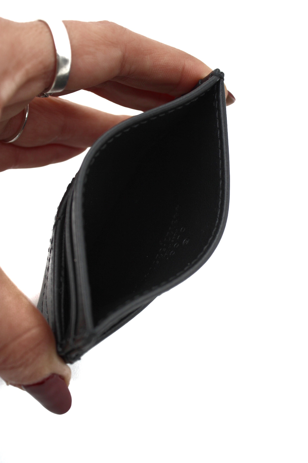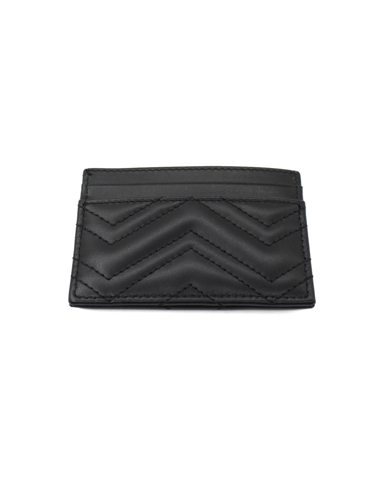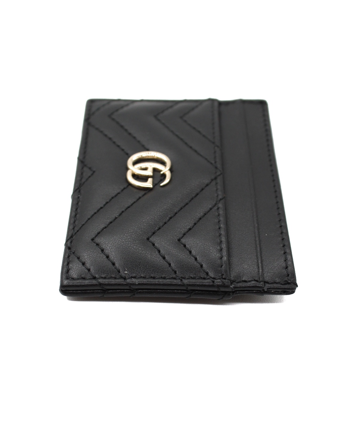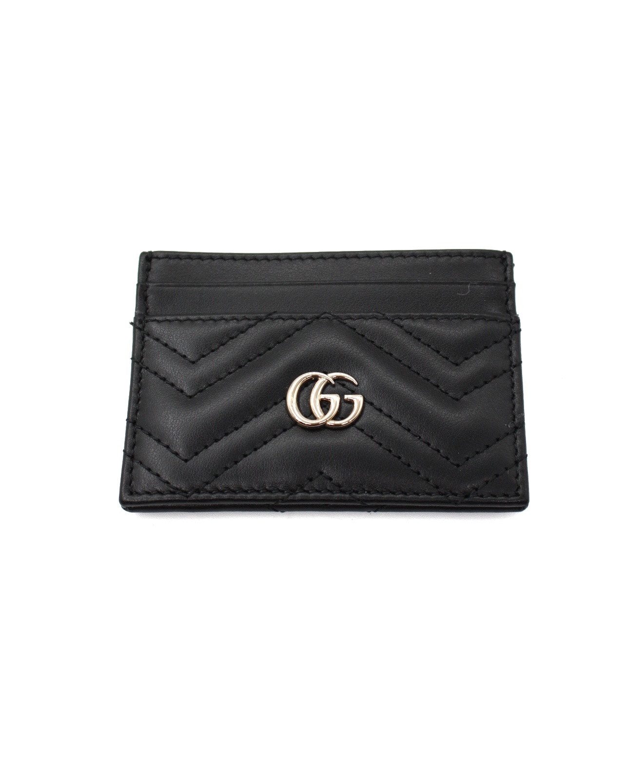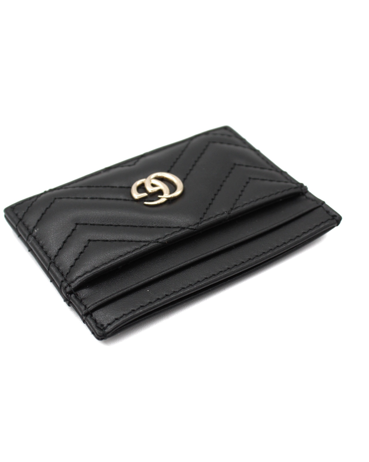 Portacarte Gucci Marmont in pelle nera. Dotato di 5 fessure per carte. Misure L10xA7 cm . Pari al nuovo completo di dust.