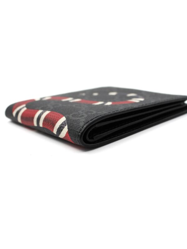 Portafoglio Gucci Bi-Fold con stampa Kingsnake in pelle. Dotato di diversi scomparti per porta carte e porta banconote. Articoli in ottime condizioni corredato di dust bag e cartellini.
