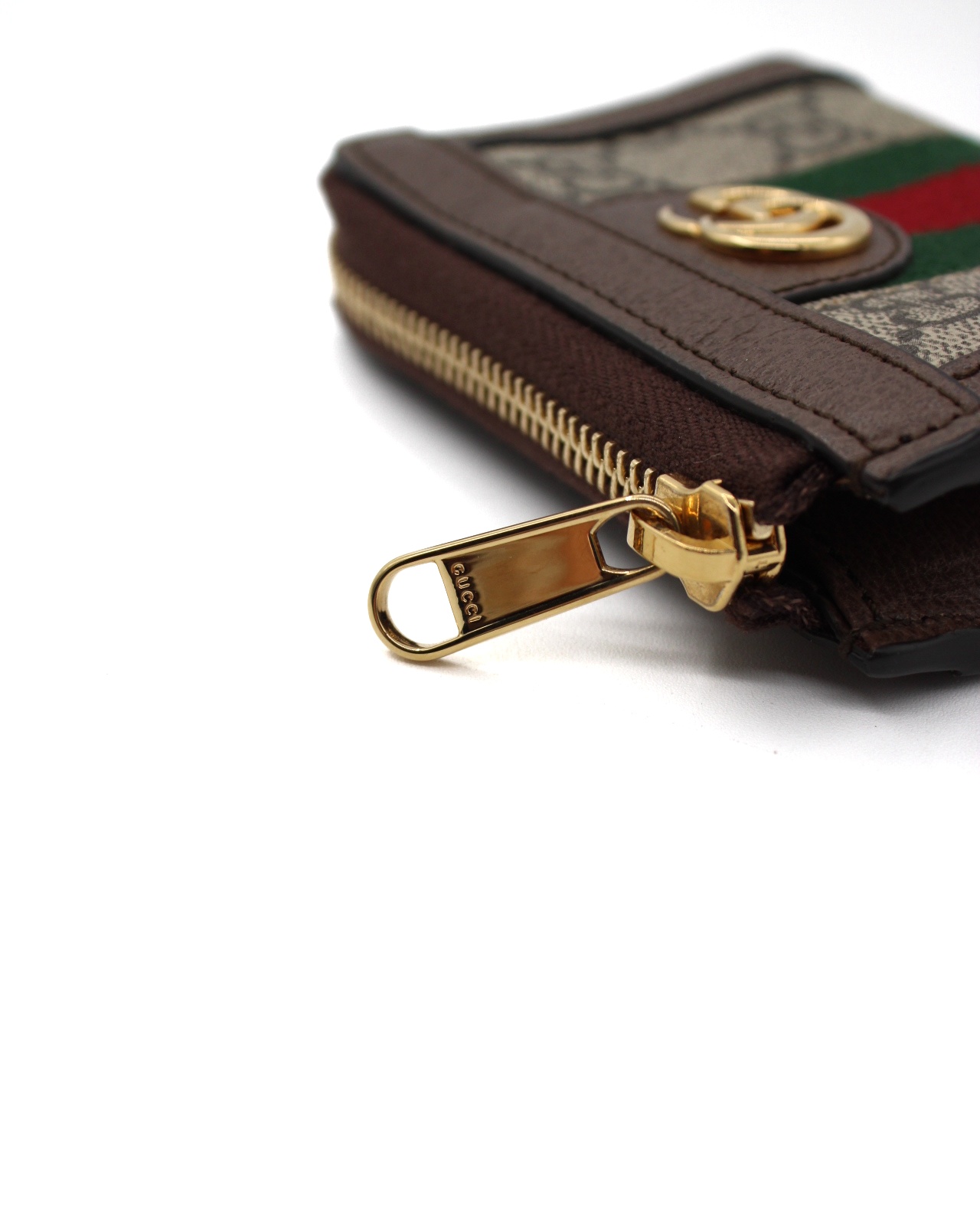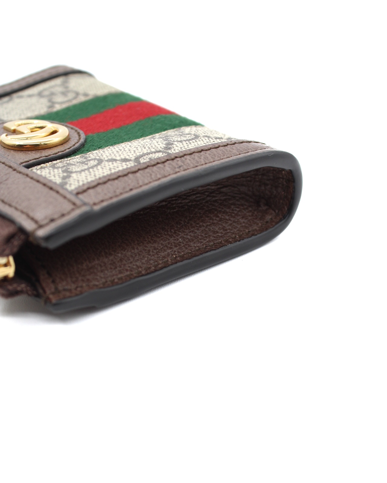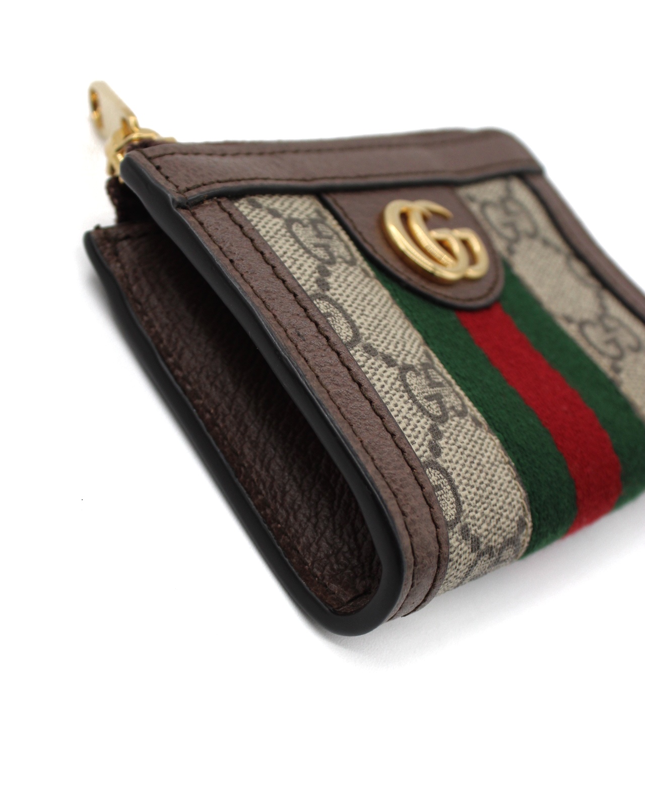 Portafoglio Gucci bi-fold Ophidia Web realizzato in tessuto GG supreme con inserti in pelle marrone e nastro web. Dotato di 4 fessure per per carte ed una tasca per banconote. Misure L11xA8xP2 cm. Articolo in condizioni eccellenti completo di dust e cartellini.