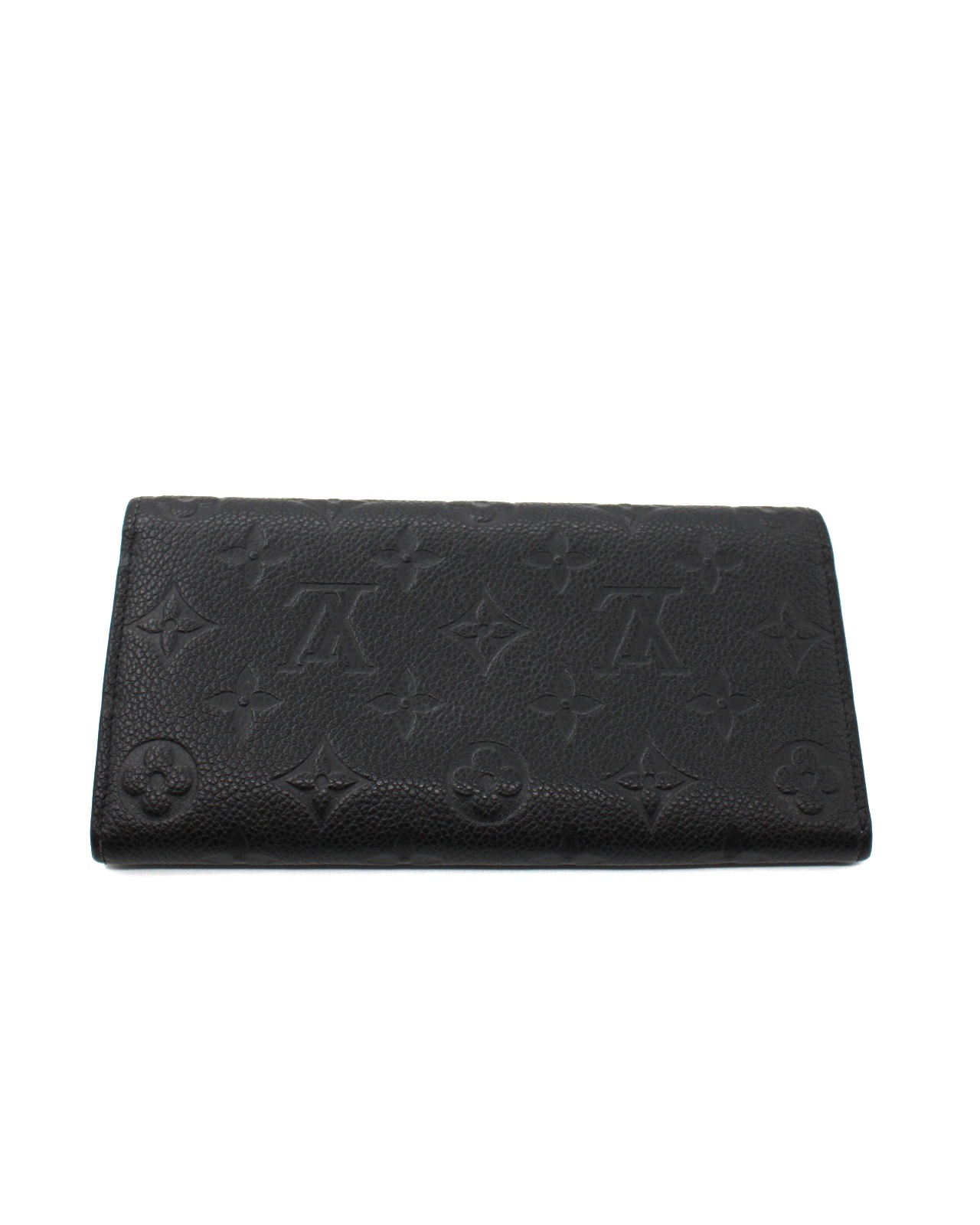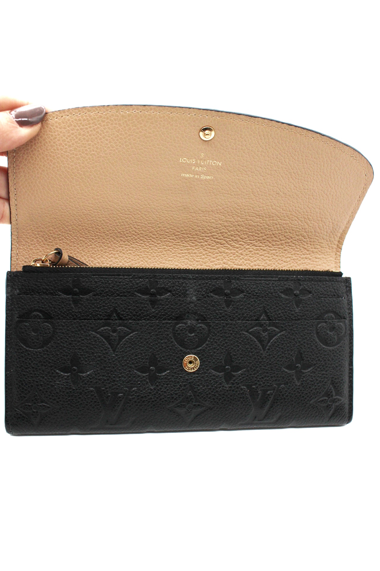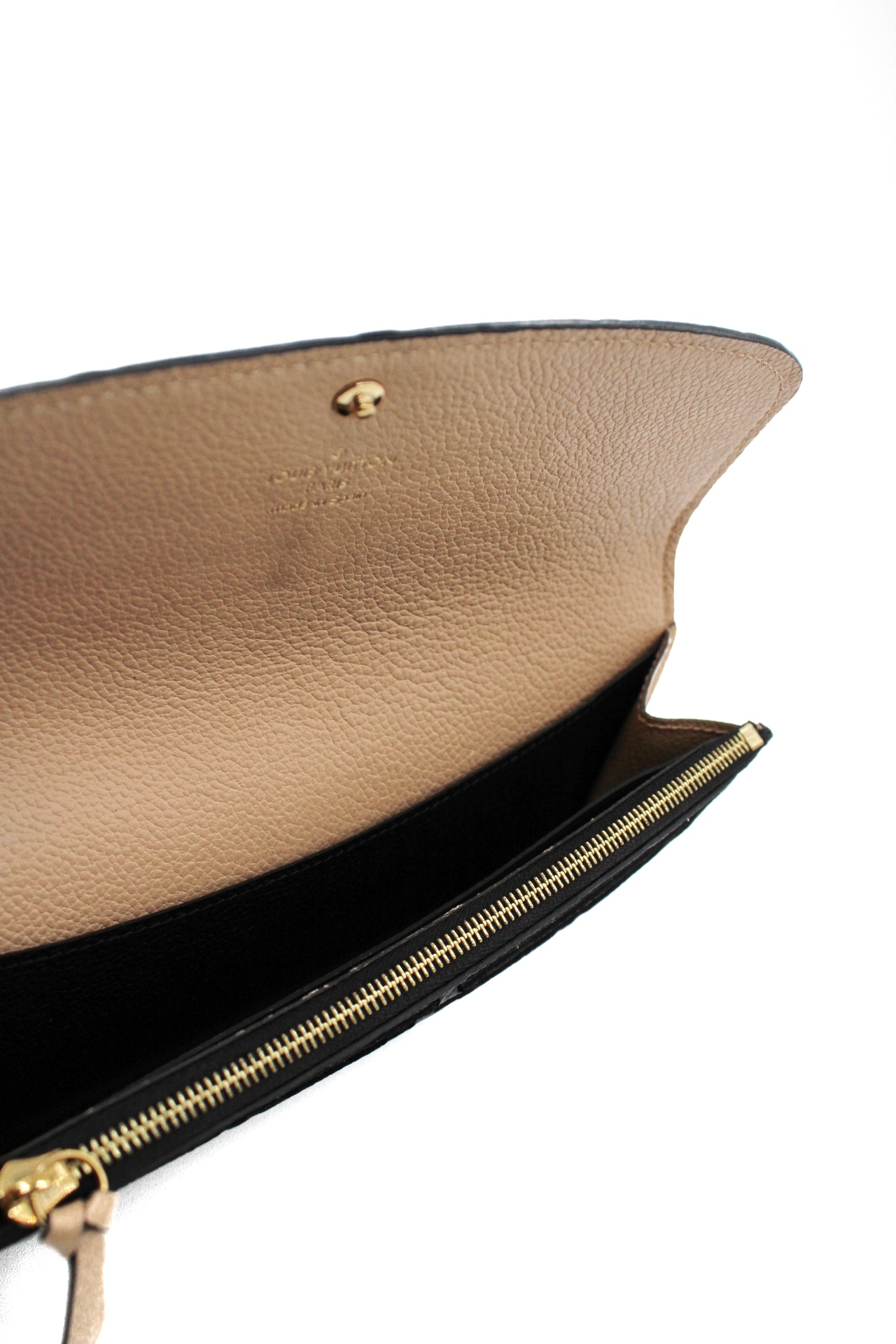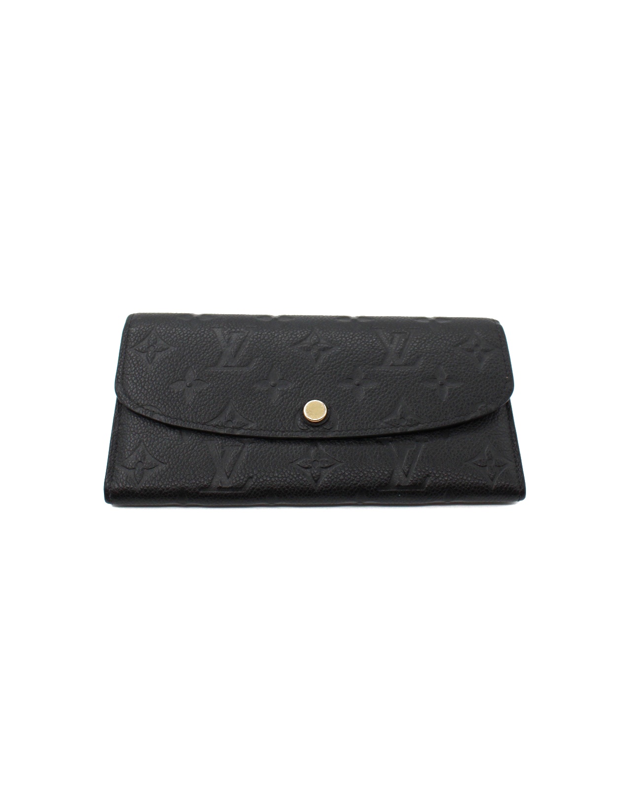Portafoglio Louis Vuitton Emilie in pelle empreinte nero e interno beige . Dotato di due scomparti interni per documenti d'identità e ricevute varie , 4 fessure per carte , una tasca con zip per banconote. Misure L19xA10xP2 cm . Articolo in ottime condizioni completo di scatola