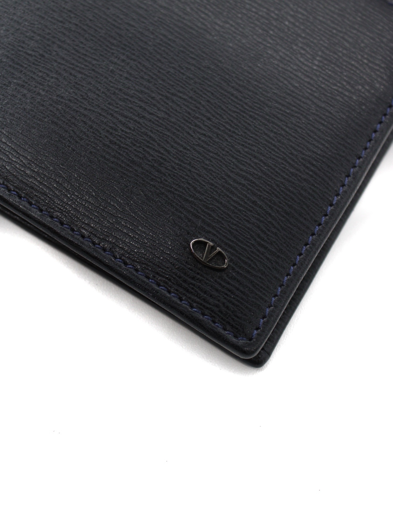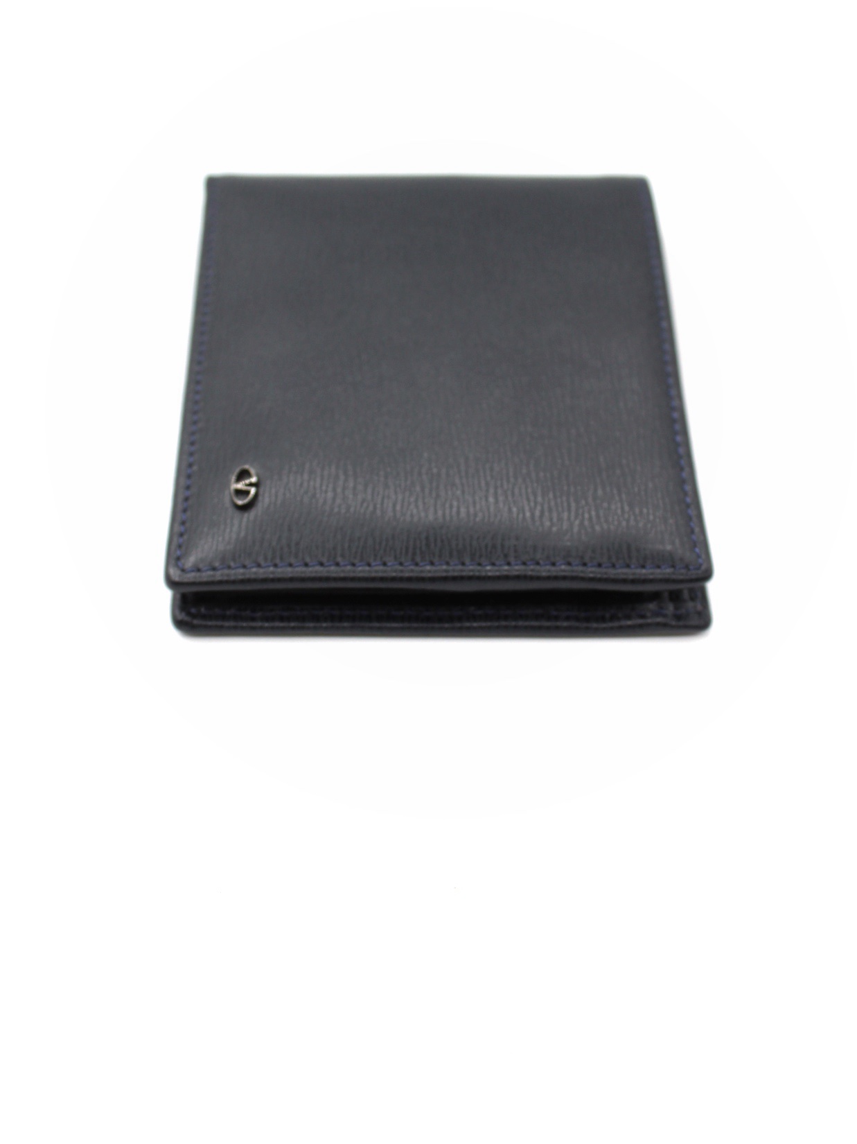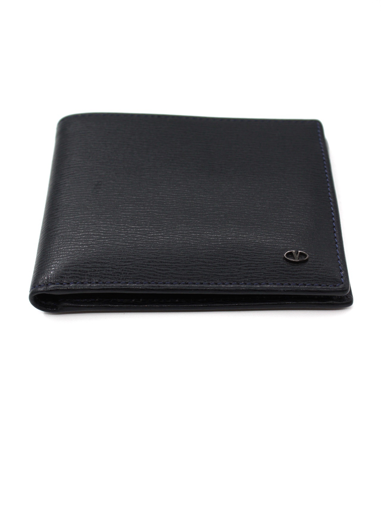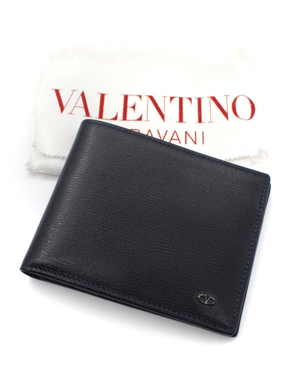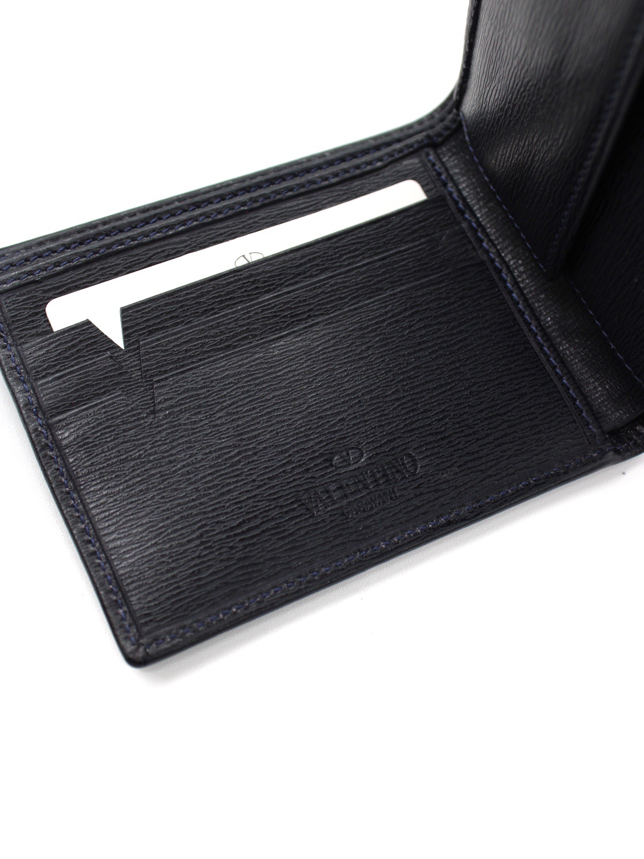 Portafoglio Valentino Garavani in pelle blu notte. Dotato di 3 scomparti per carte , una tasca con bottone per monete , due scomparti piatti per banconote . Articolo in condizioni eccellenti completo di dust.