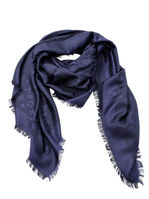 Scialle Louis Vuitton colore Viola realizzata in 60% Seta 40% Lana. Presenta bordi sfrangiati. Articolo in condizioni pari al nuovo corredato di scatola.