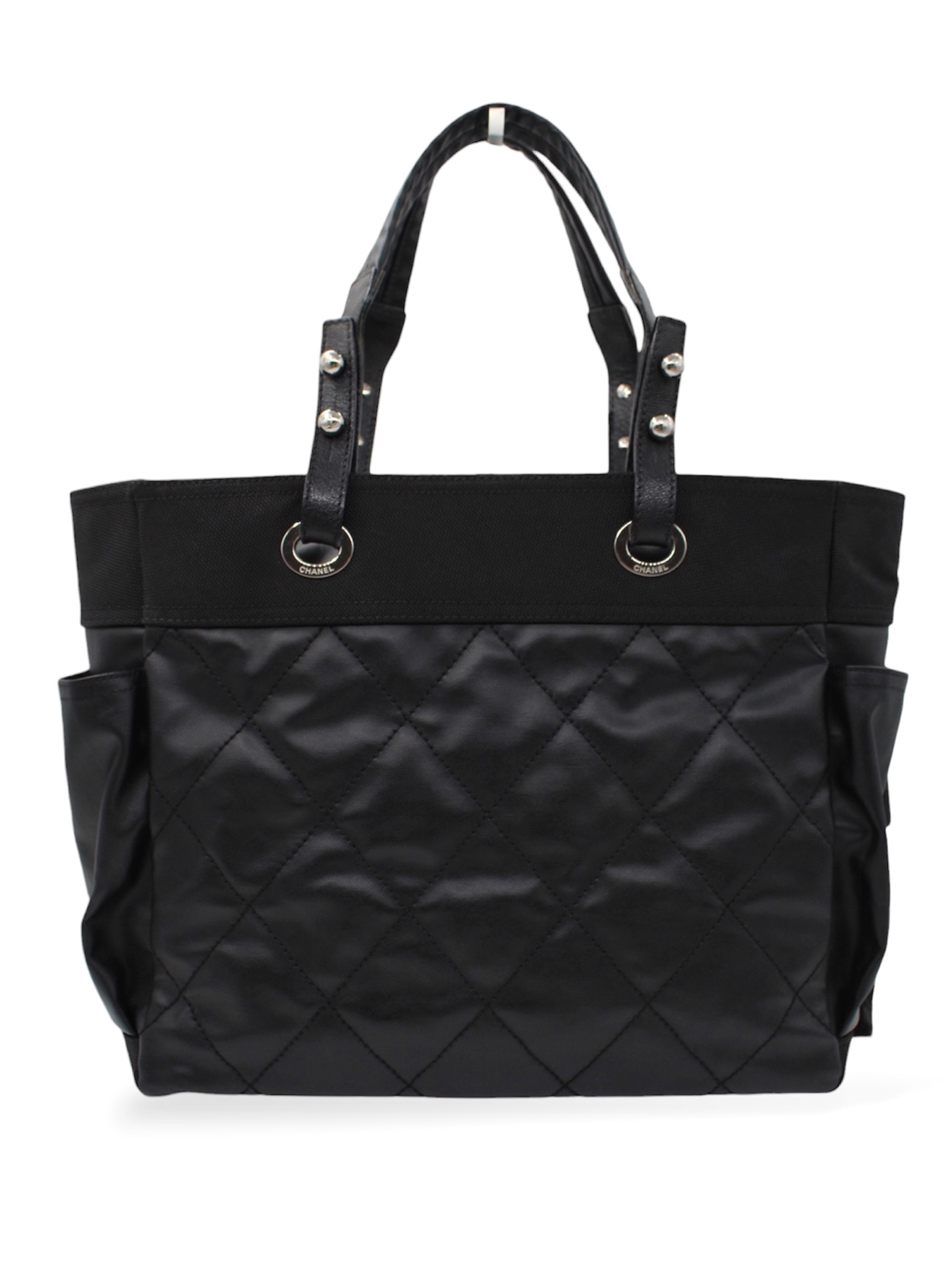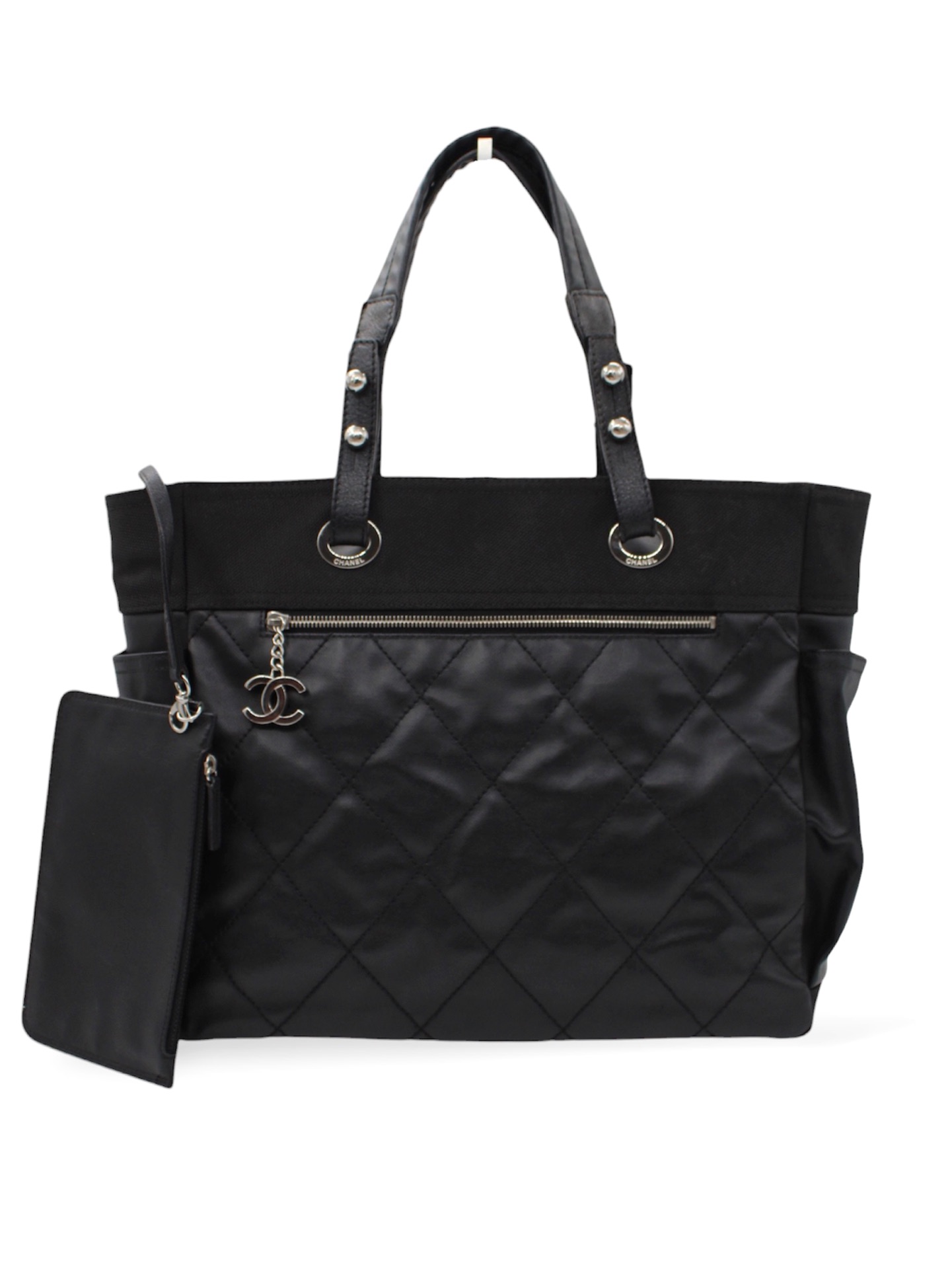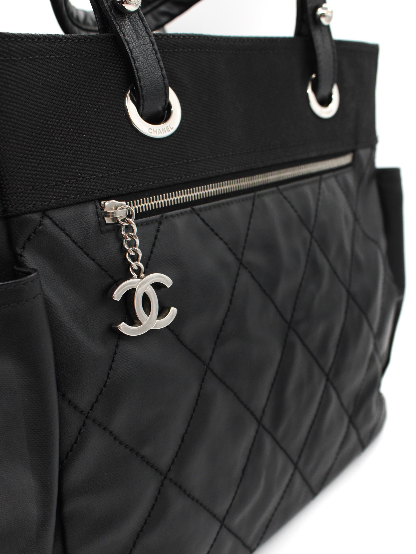 Shopper Chanel Biarritz in Pelle Trapuntata Nera con parti metalliche argentate. Da portare a spalla questa borsa è perfetta per un uso giornaliero con outfit casual chic. Articolo in ottime condizioni corredato di dust bag Très Chic e card.