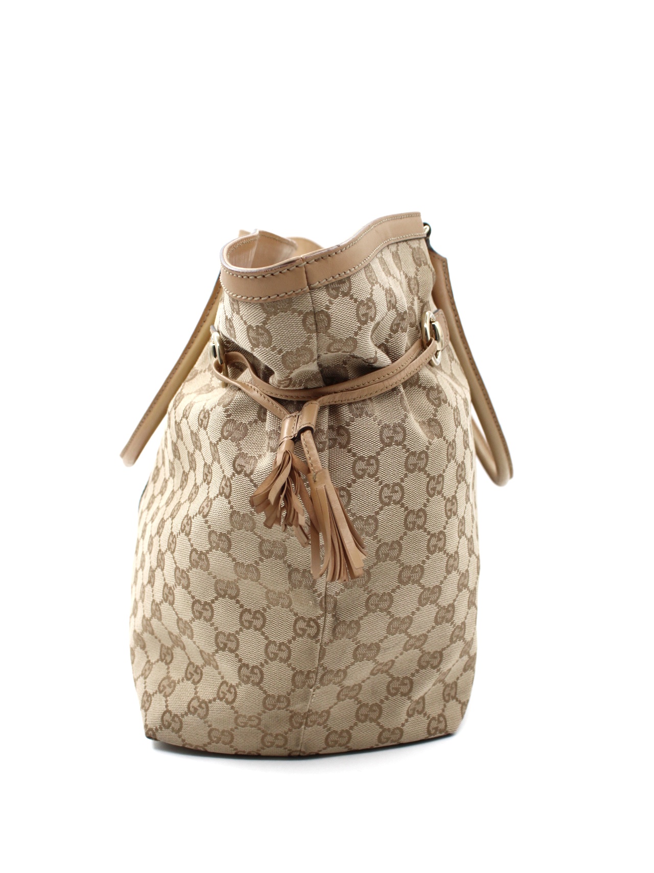 Shopper Gucci In Tela GG supreme con parti metalliche dorate. Da portare a spalla questa borsa è perfetta per tutti i giorni con outfit casual e giornalieri. Articolo in ottime condizioni copn dust Très Chic.