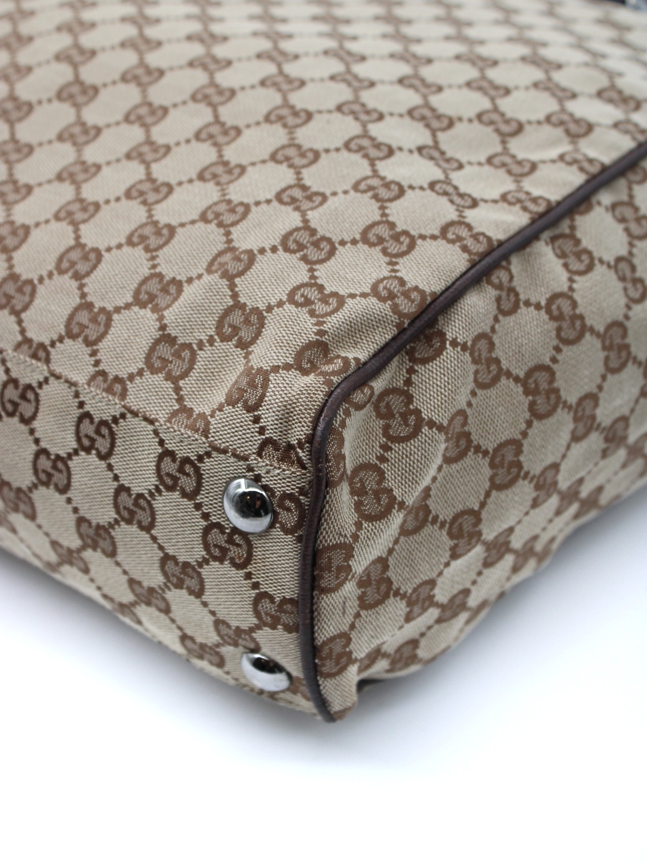 Shopper Gucci in tela GG e parti metalliche argentate. Borsa da portare a mano è perfetta per tutti i giorni. Articolo in condizioni ottime con dust bag très chic e cartellini.