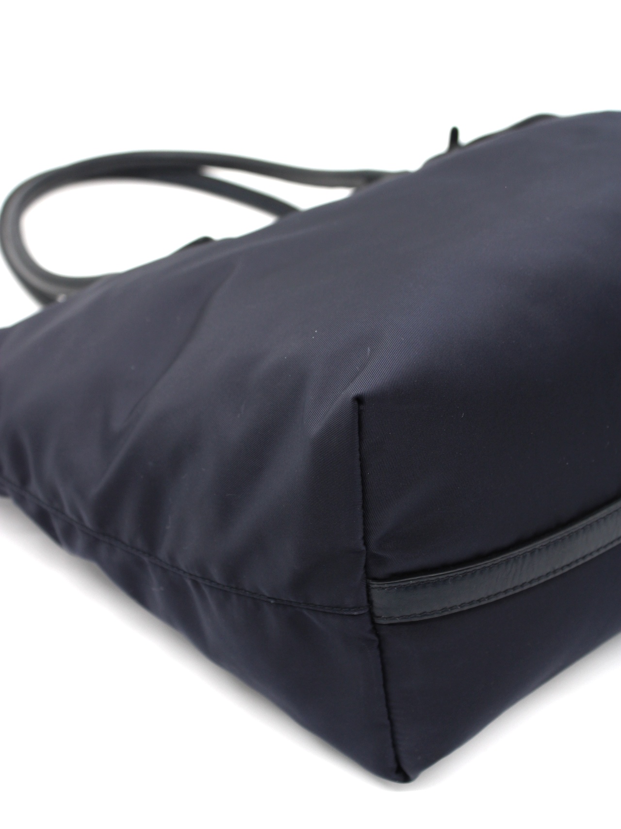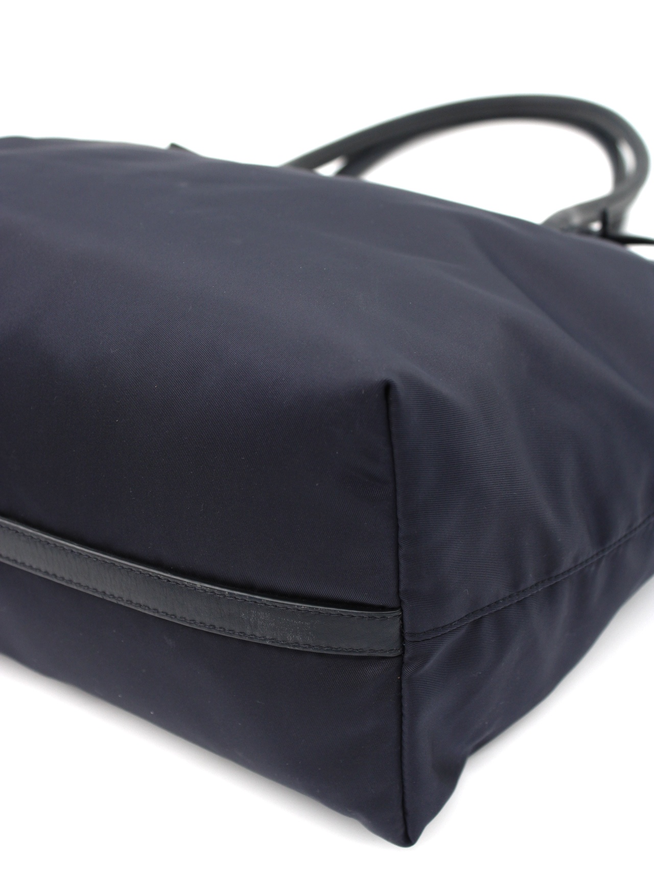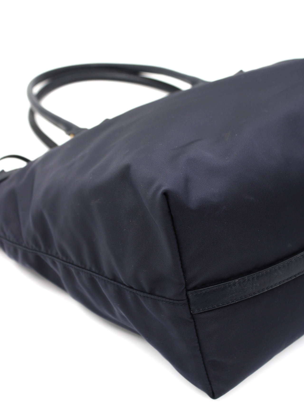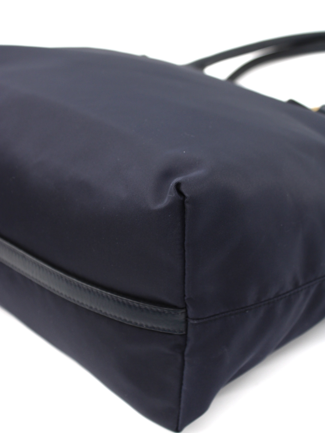Shopper Prada in tela vela blu con parti metalliche dorate. Da portare a spalla questa borsa è perfetta per tutti i giorni con outfit casual. Articolo in condizioni eccellenti corredato di dust très chic.