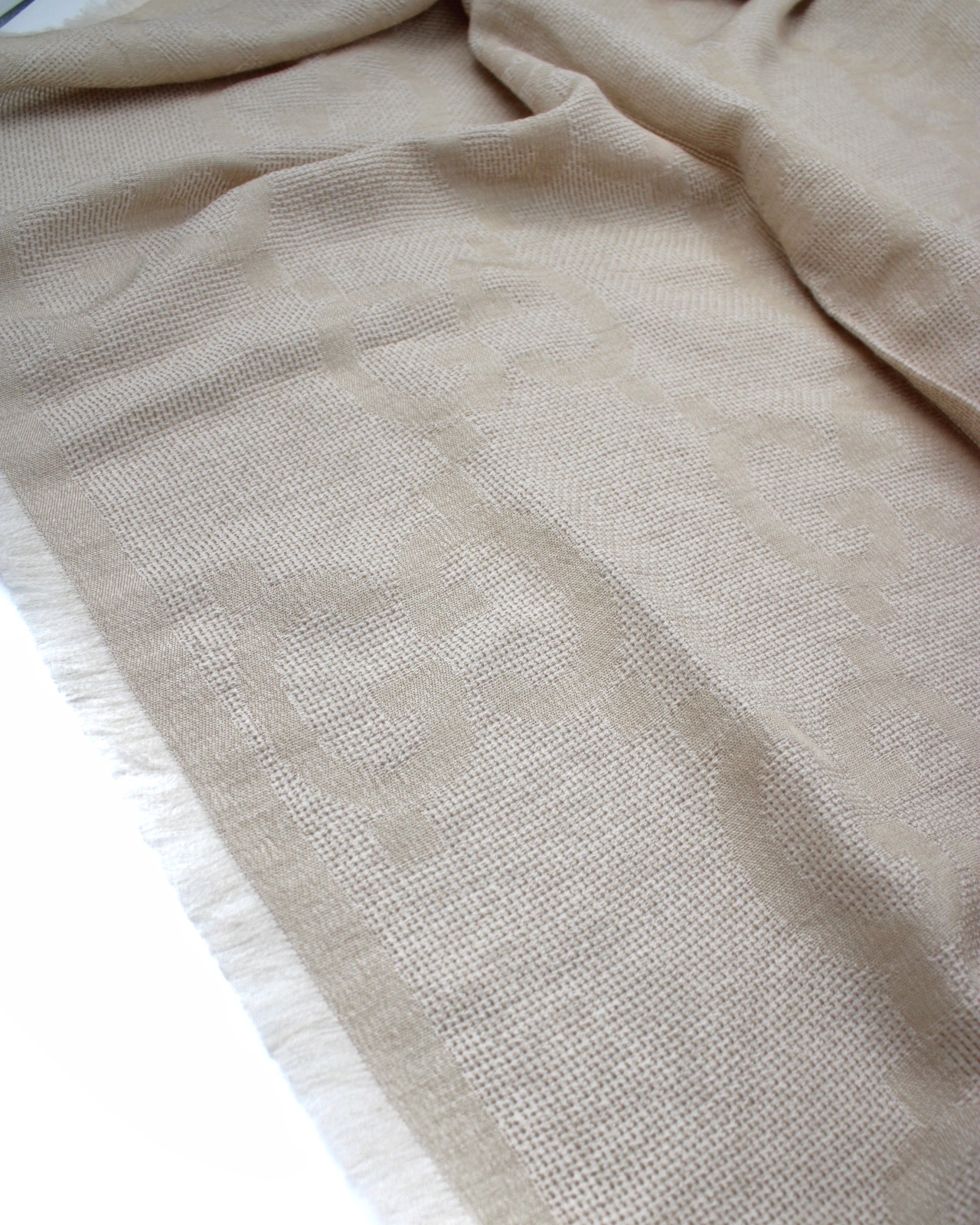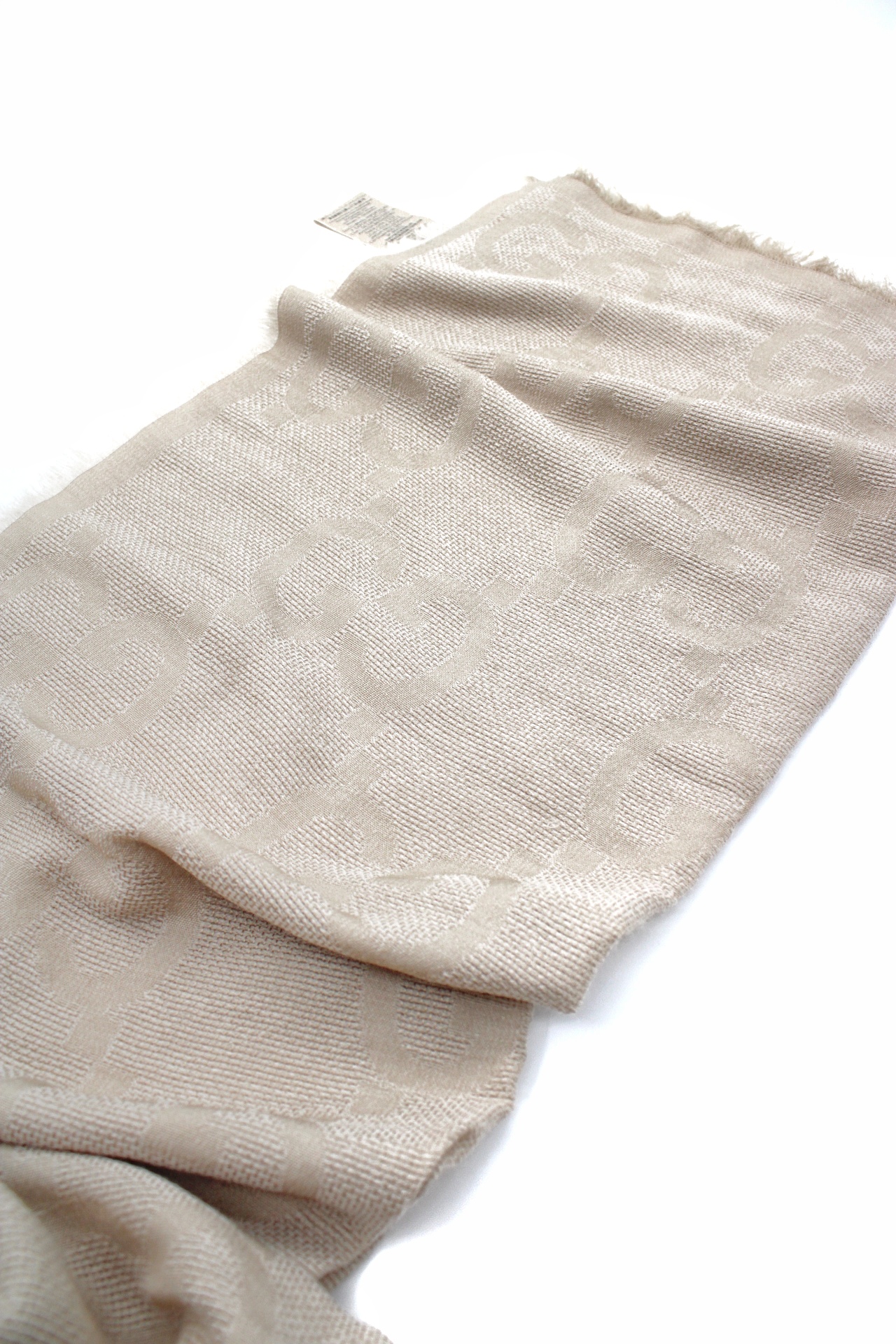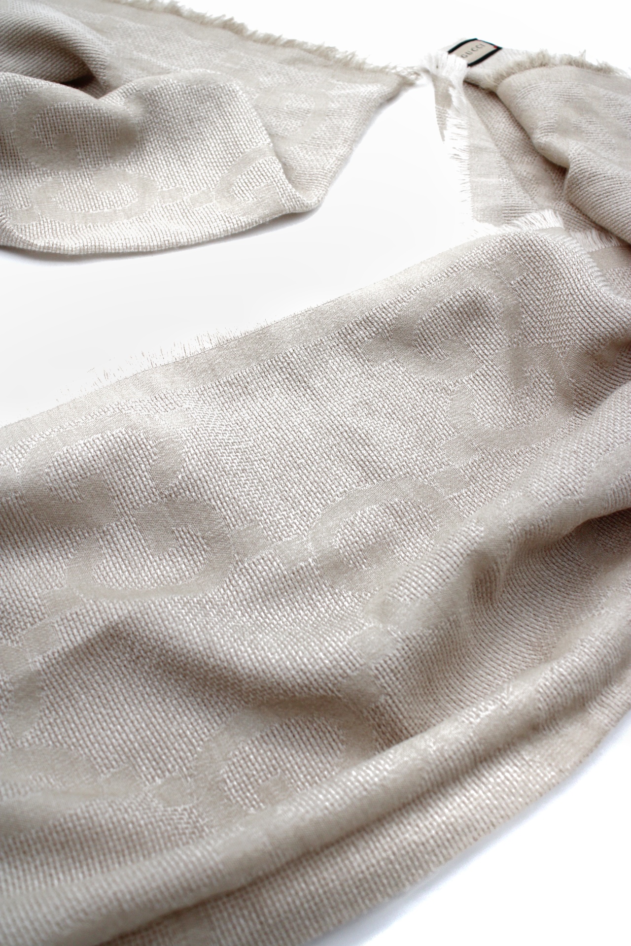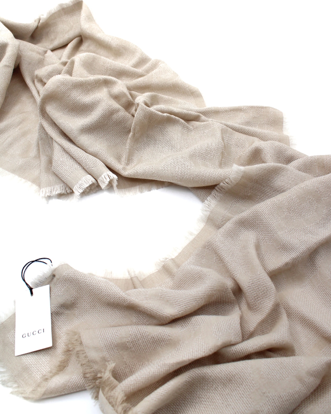 Stola Gucci GG beige in lana e seta. Misure 65x215 cm . Articolo in condizioni eccellenti completo di dust.