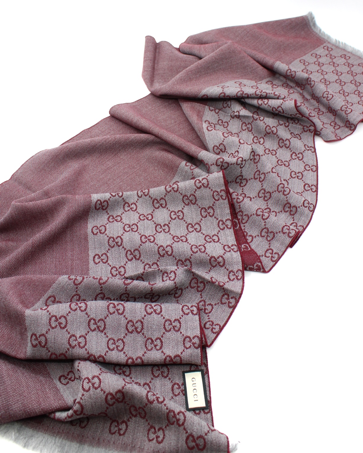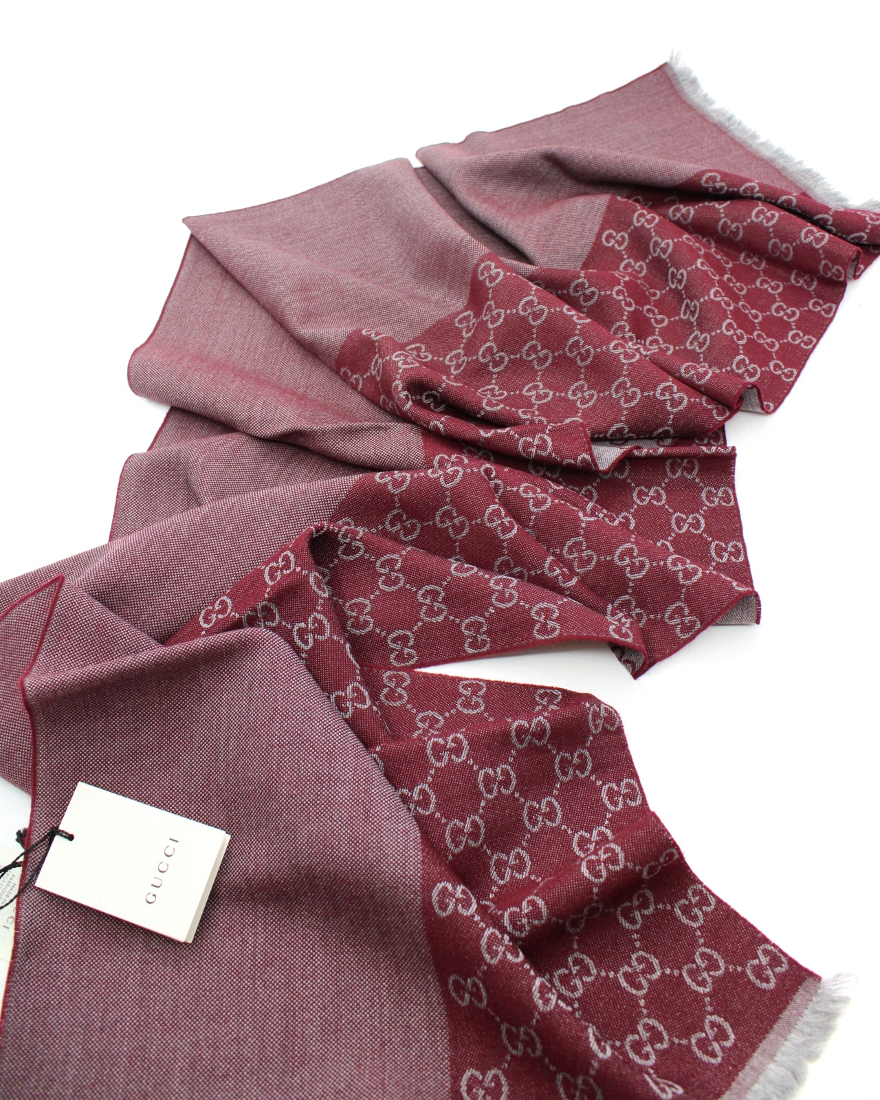 Stola Gucci GG bordeaux in lana . Misure 40x180 cm . Articolo pari al nuovo completo di cartellini e dust Très Chic.