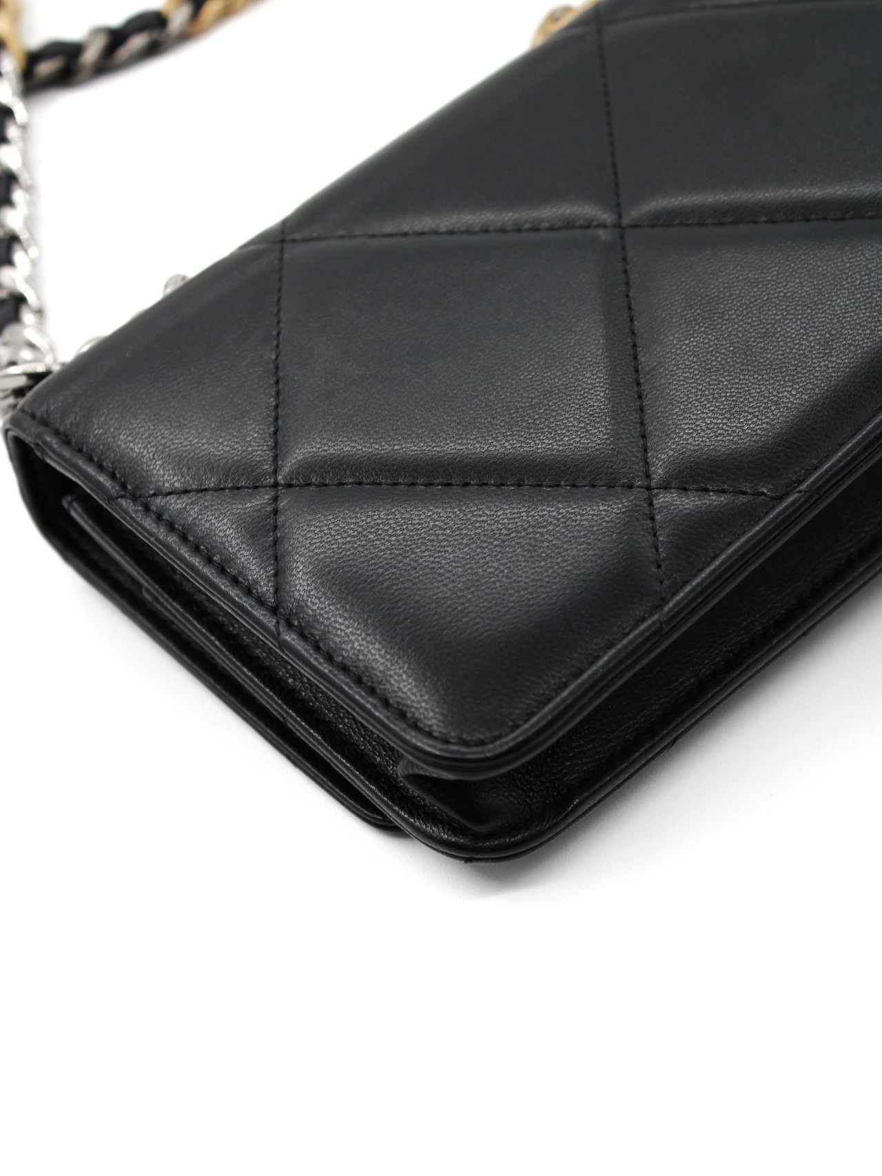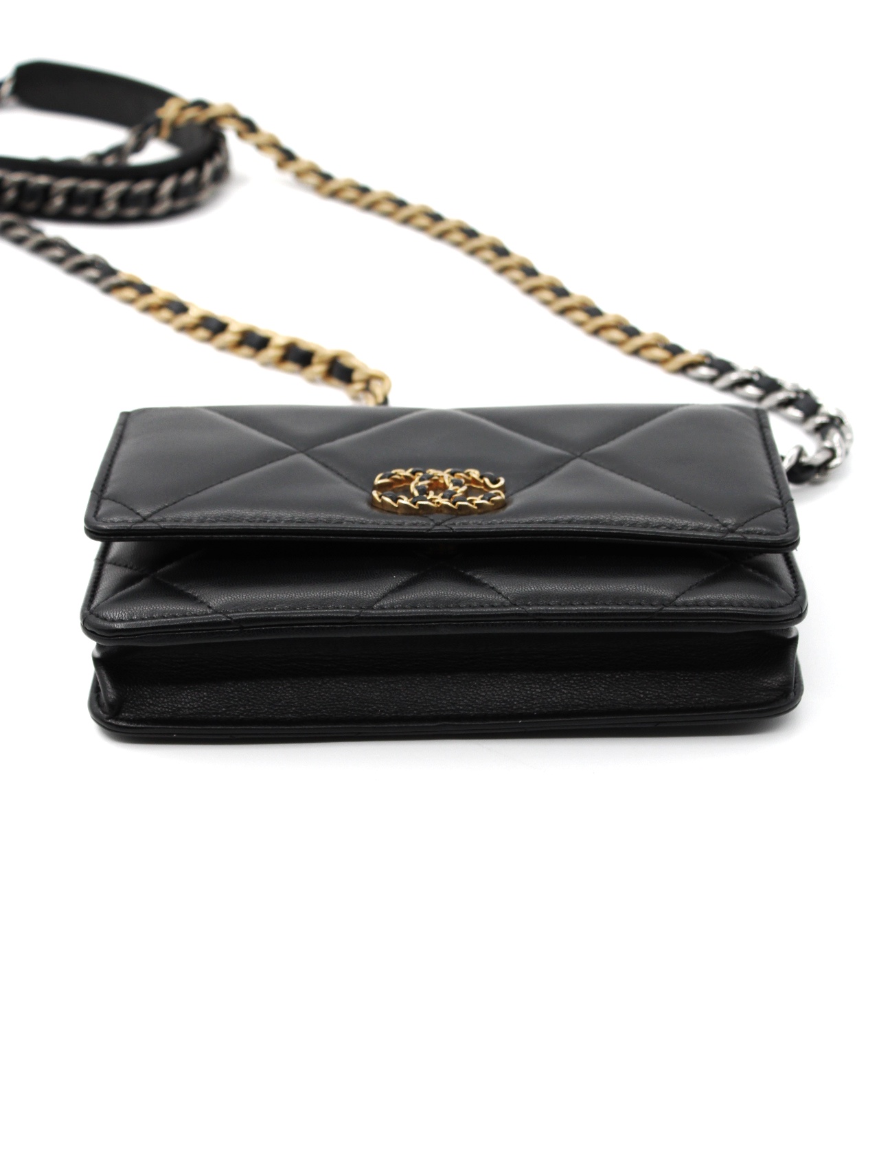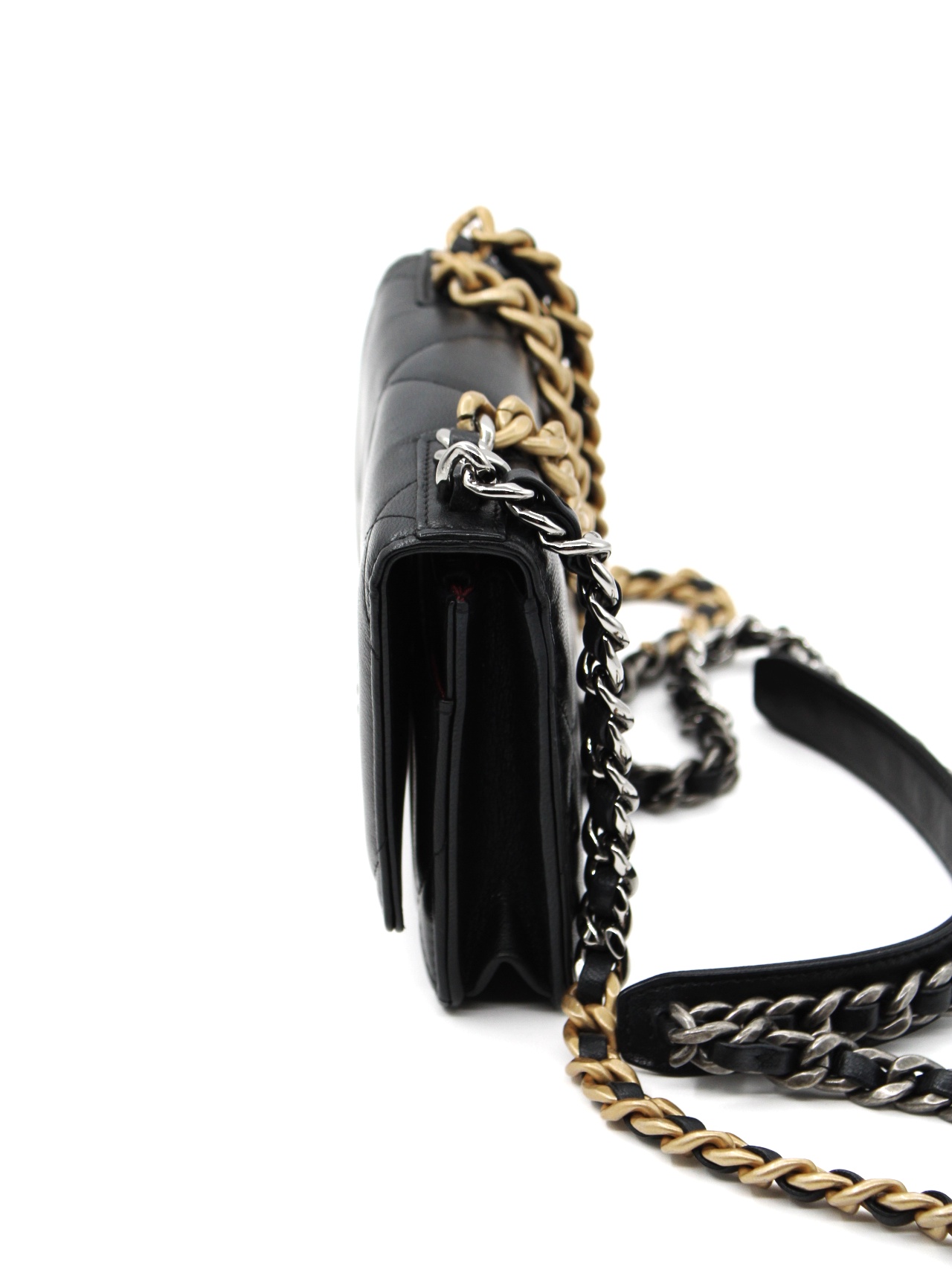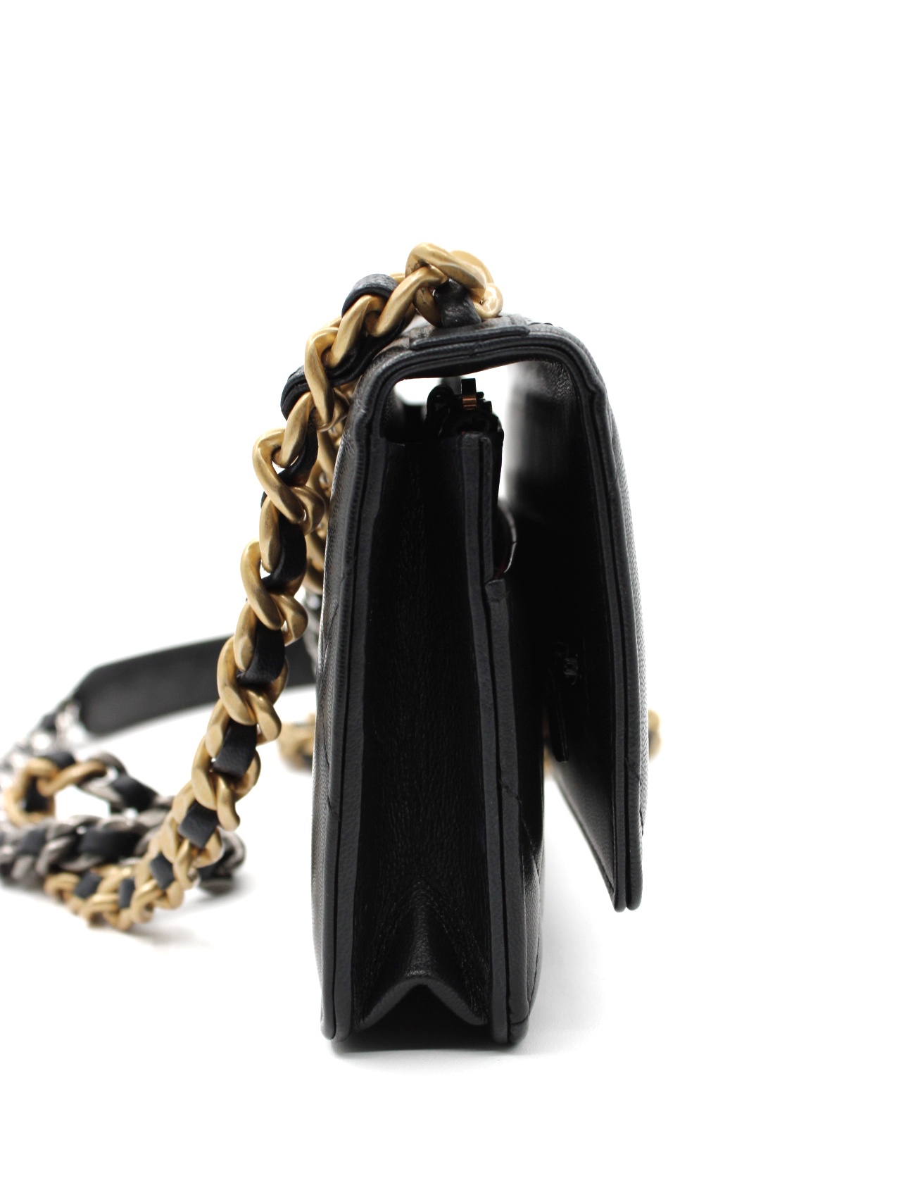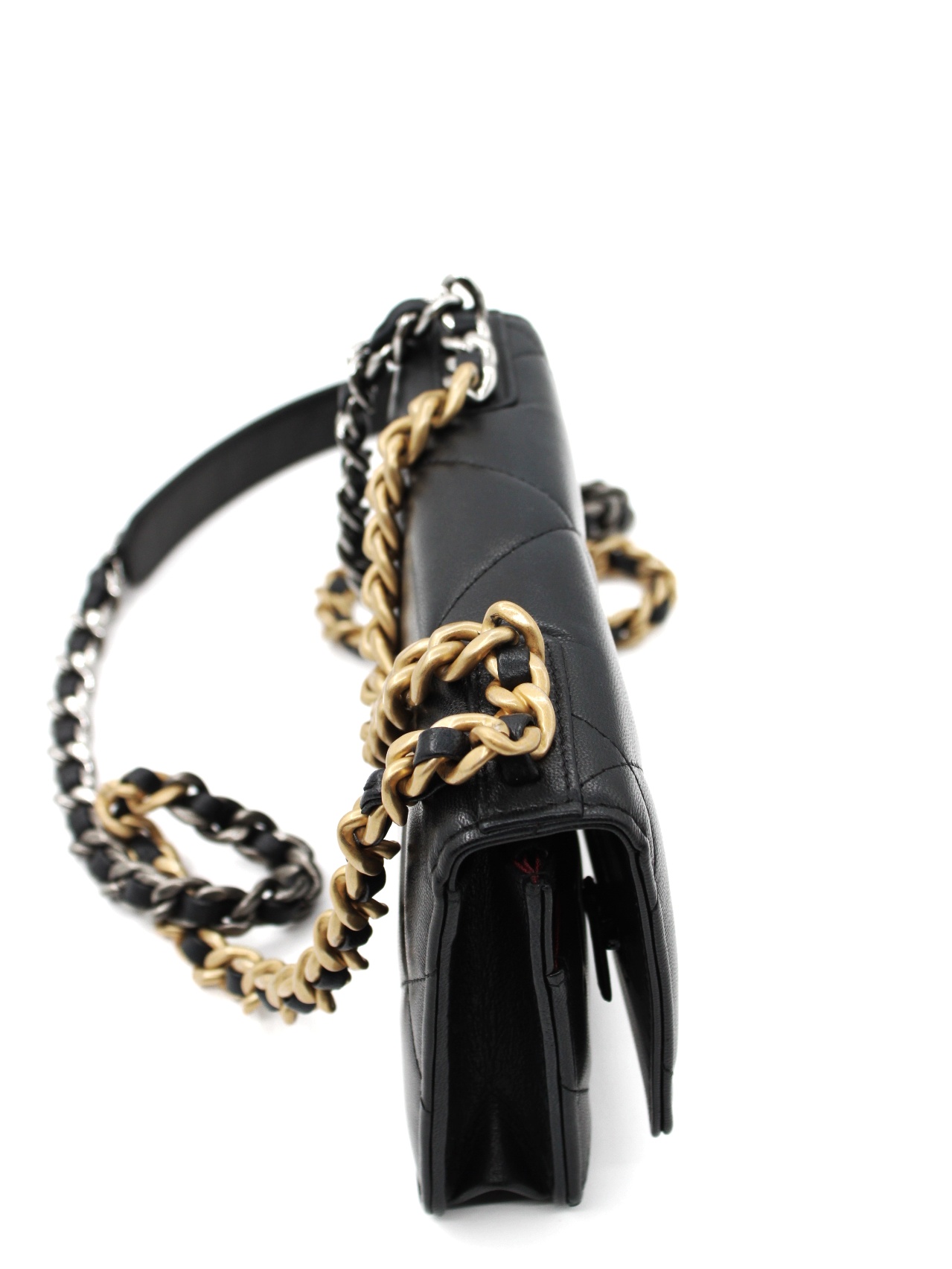 Tracolla Chanel 19 in pelle nero anno 2020 con parti metalliche oro e argento. Borsa perfetta per occasioni speciali. Articolo in condizioni eccellenti corredata di dust bag, card e certificato di entrupy.