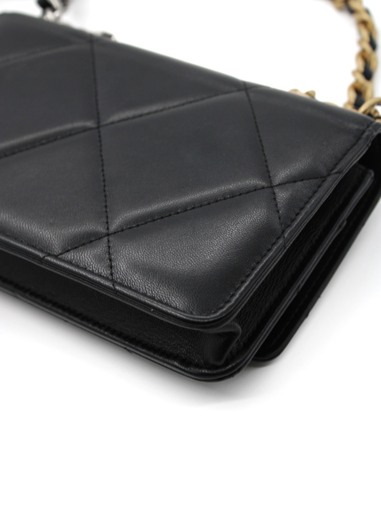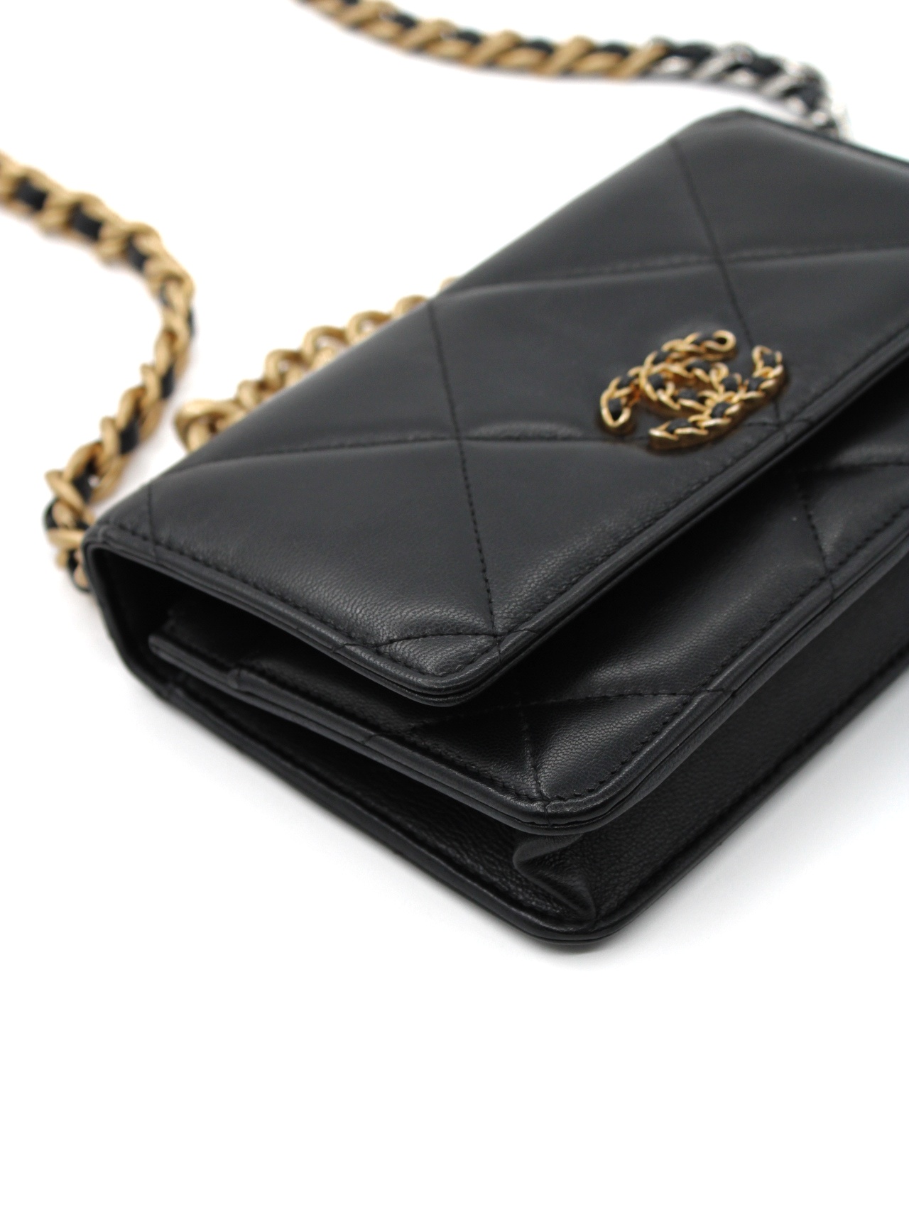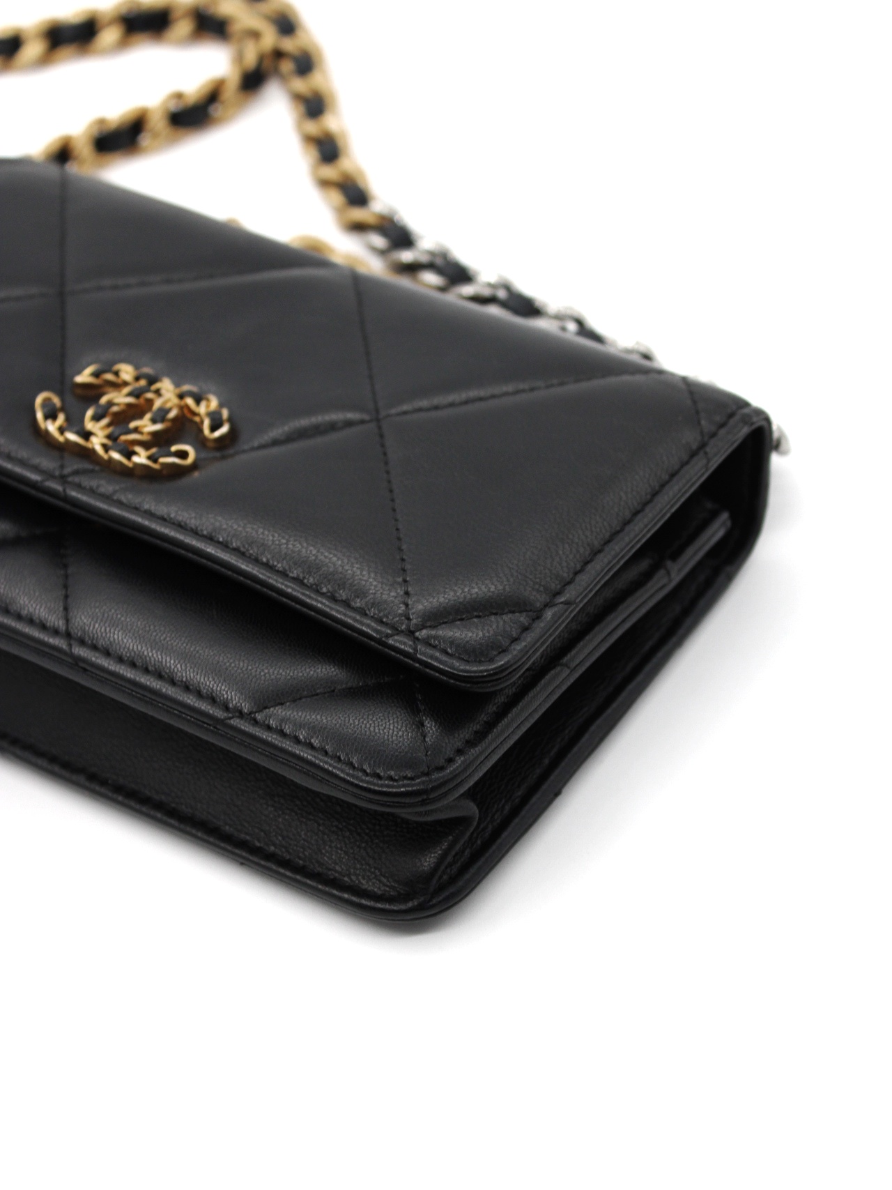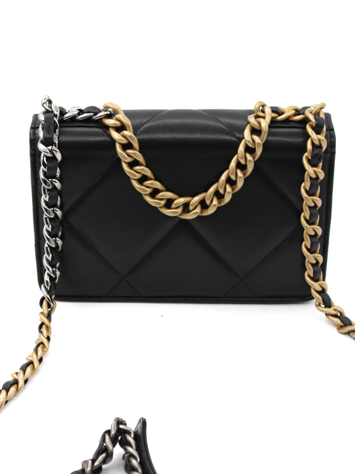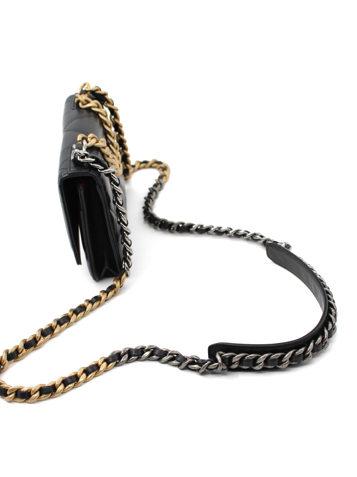 Tracolla Chanel 19 in pelle nero anno 2020 con parti metalliche oro e argento. Borsa perfetta per occasioni speciali. Articolo in condizioni eccellenti corredata di dust bag, card e certificato di entrupy.