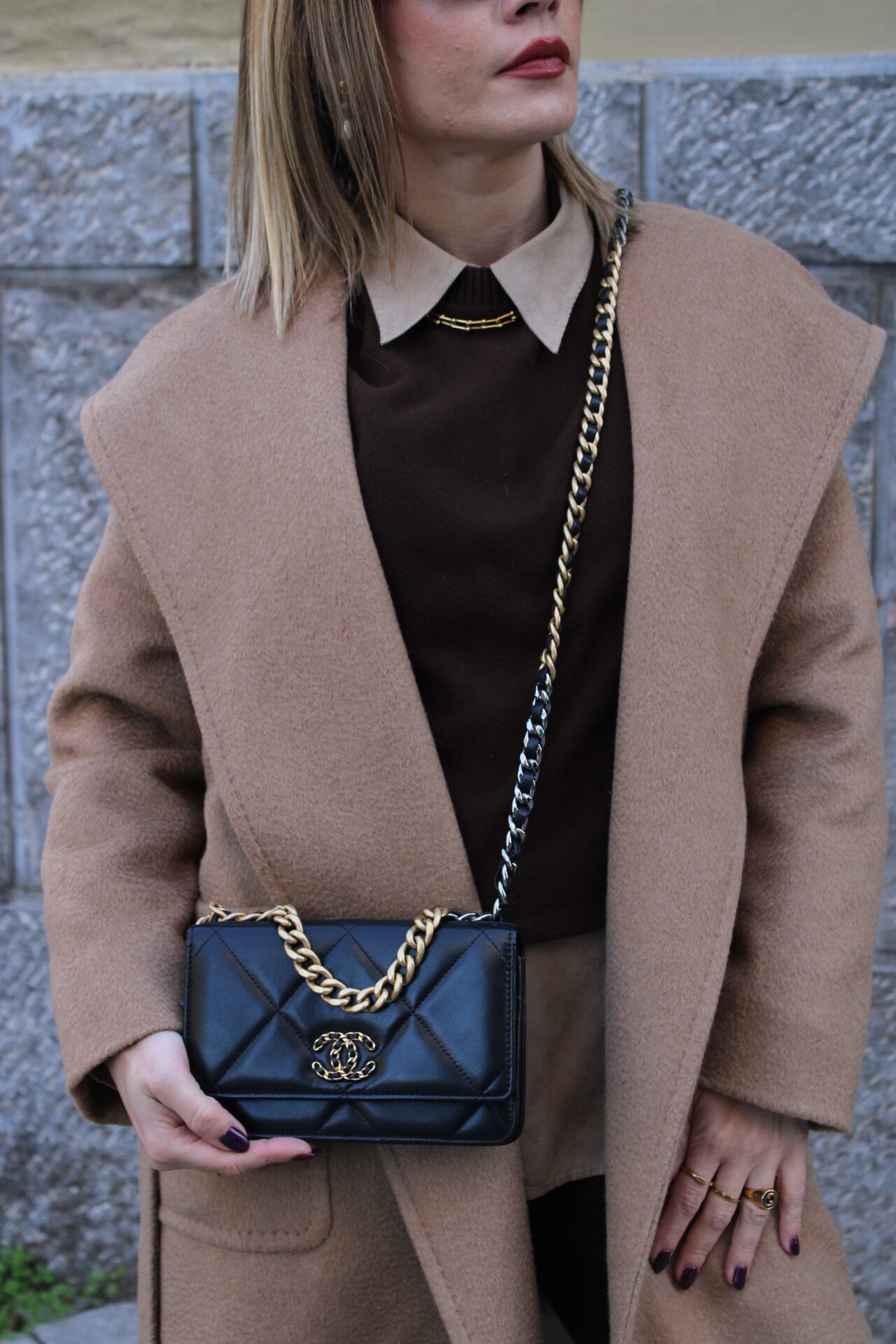 Tracolla Chanel 19 in pelle nero anno 2020 con parti metalliche oro e argento. Borsa perfetta per occasioni speciali. Articolo in condizioni eccellenti corredata di dust bag, card e certificato di entrupy.