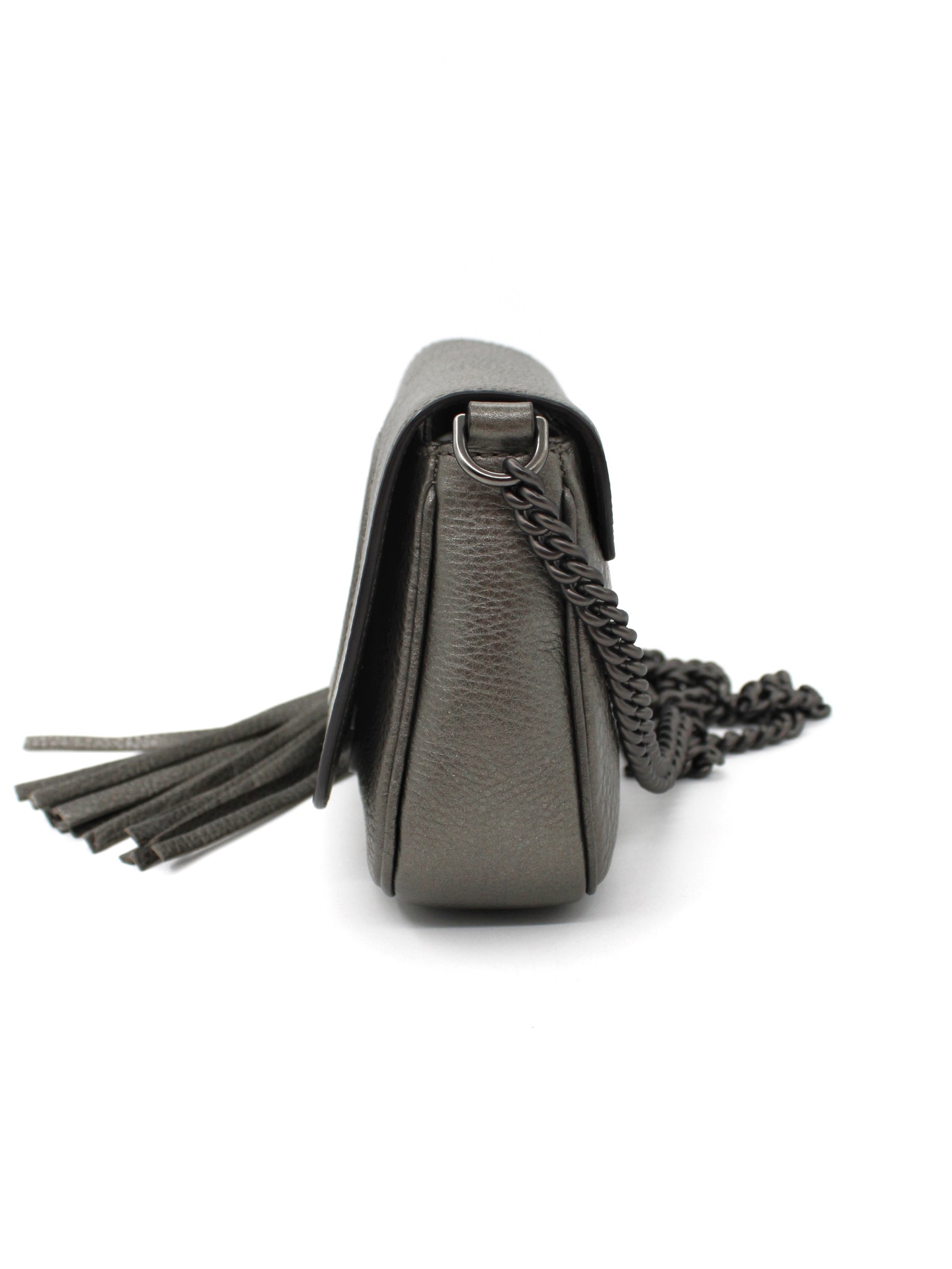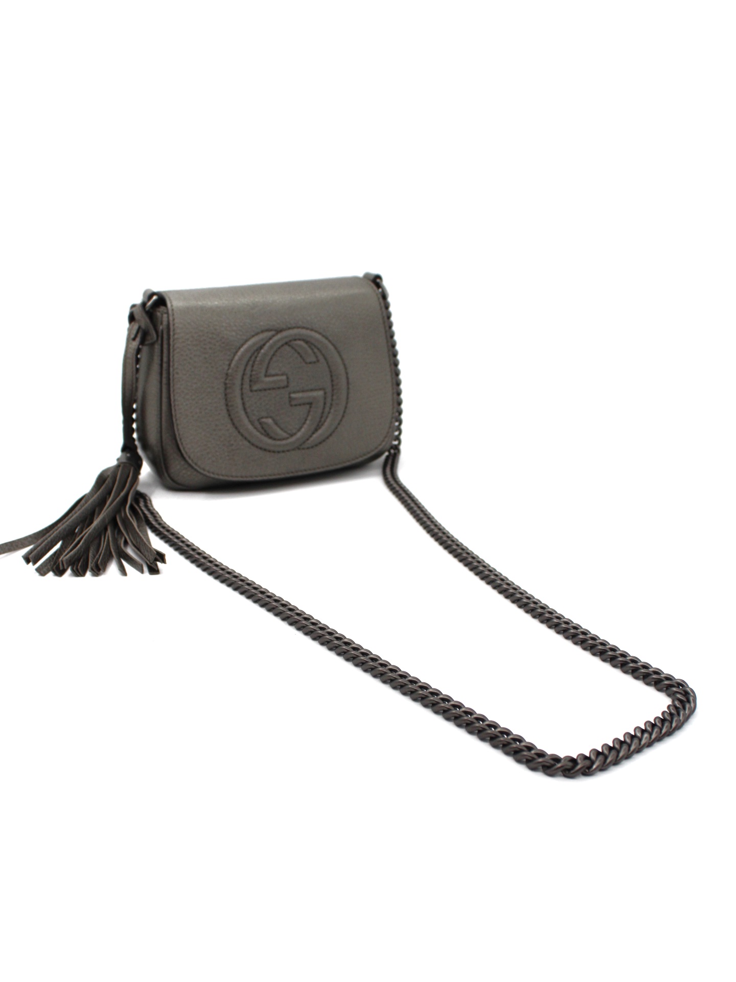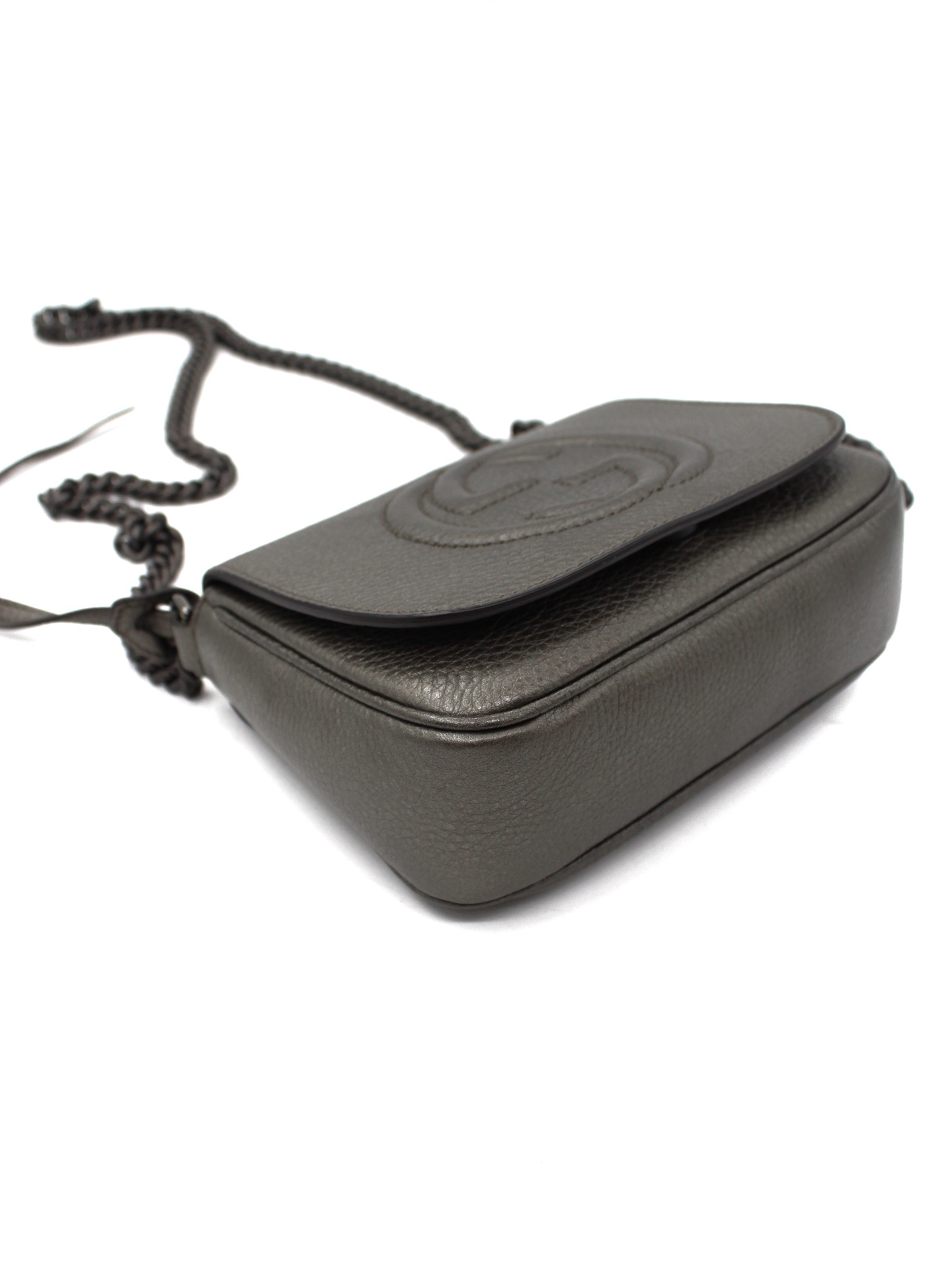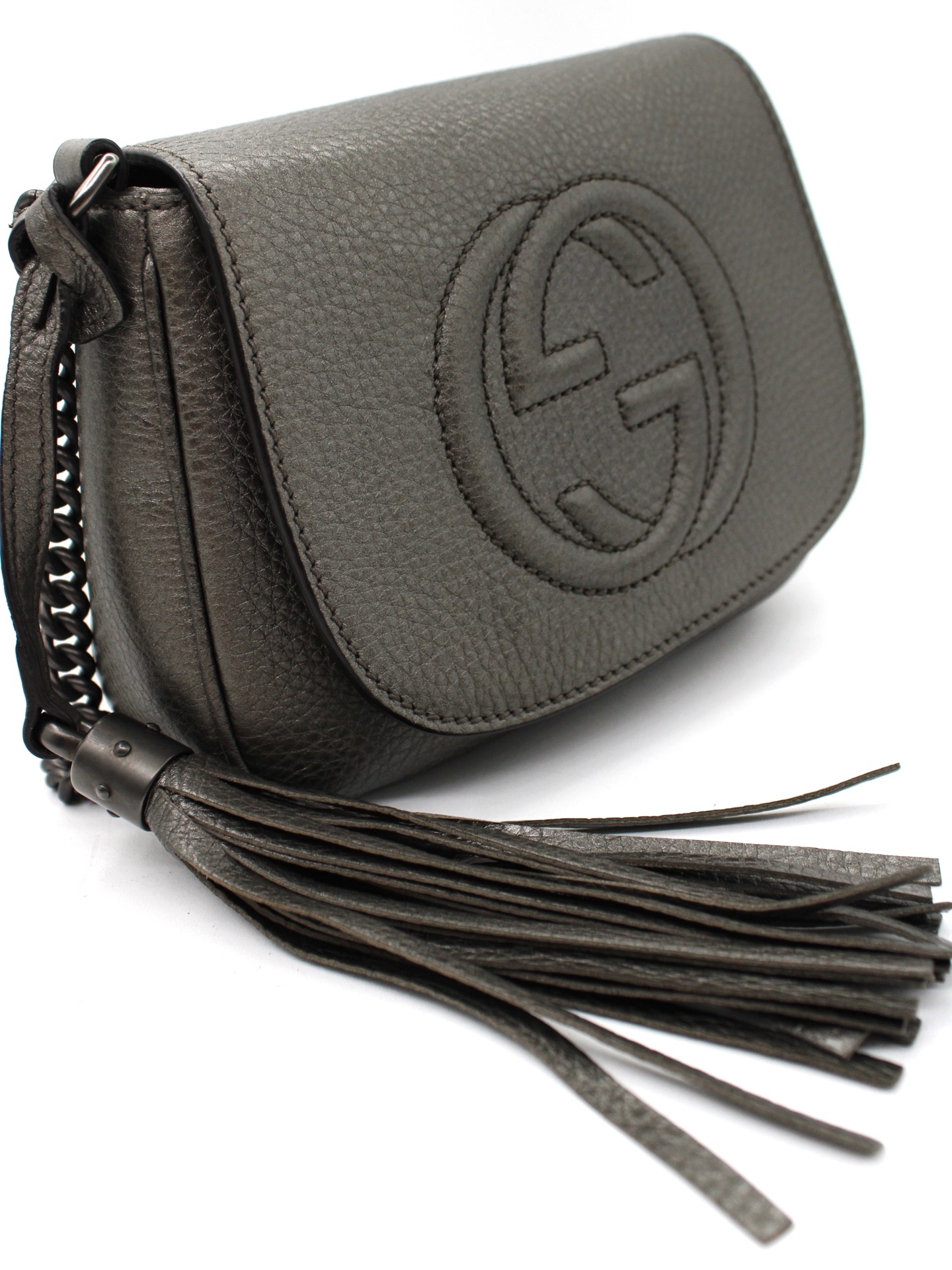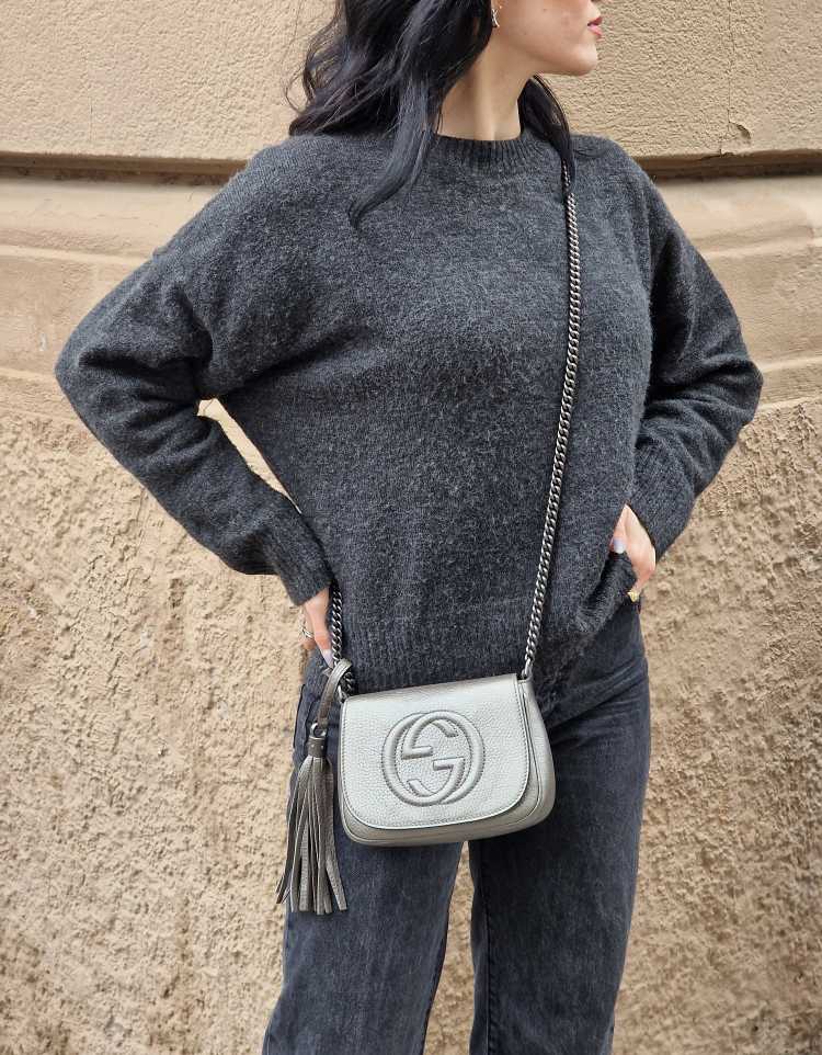 Tracolla Gucci Soho in Pelle Martellata e parti metalliche argento brunito opaco. Da portare a spalla o ad incrocio grazie alla sua tracolla, questa borsa è perfetta con svariati outfit. Articolo in condizioni eccellenti corredato di scatola.