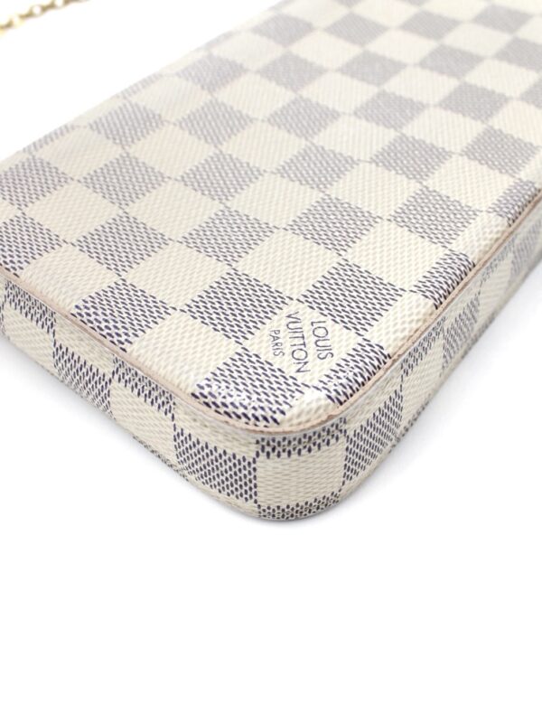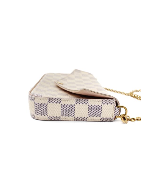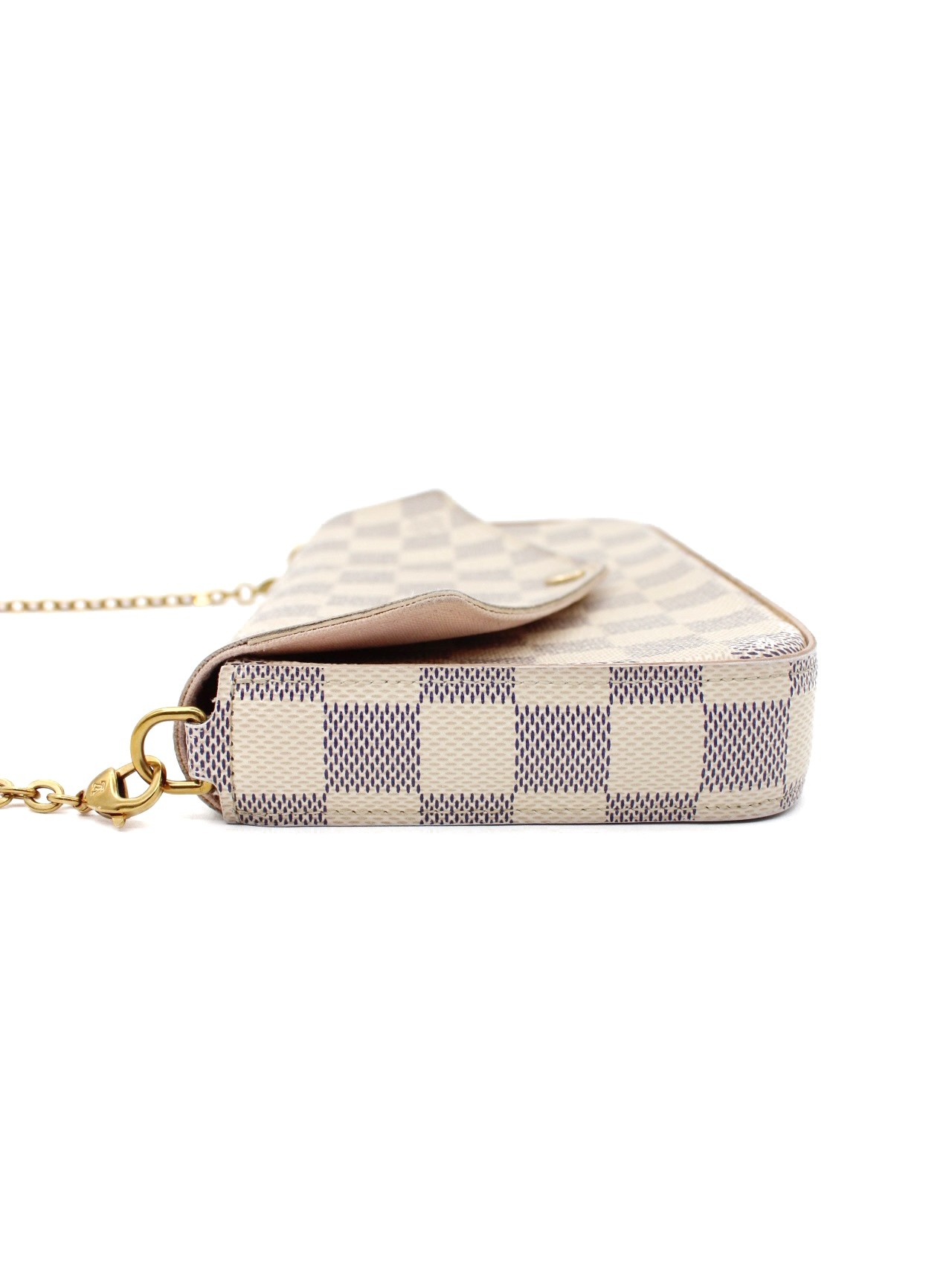 Tracolla Félicie in Damier Azur con dettagli metallici dorati. Da portare ad incrocio questa borsa è perfetta per svariate occasioni. Articolo in ottime condizioni corredato di dust bag Très Chic.