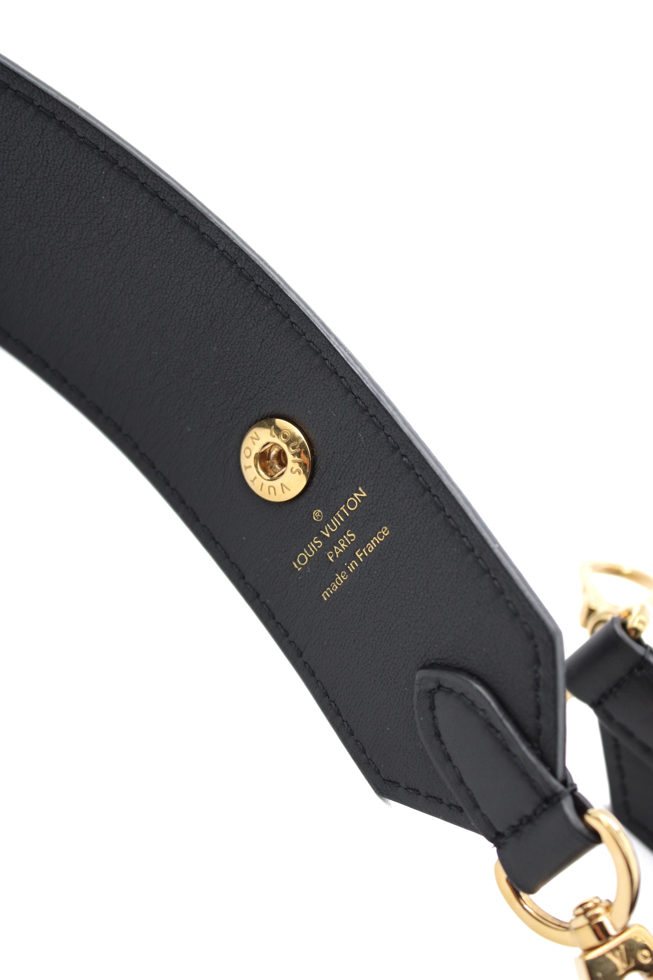 Tracolla Louis Vuitton Monogram e pelle nera. Può essere portato in tre lunghezze 119 cm , 97 cm , 72 cm larghezza 4 cm . Articolo in condizioni eccellenti completo di dust