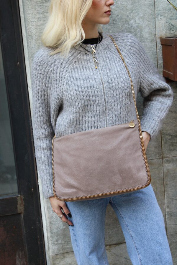 Tracolla Stella McCartney Falabella con parti metalliche dorate. Da portare a spalla questa borsa è perfetta sia con outfit casual chic. Articolo in ottime ottime condizioni corredato di dust bag Très Chic.