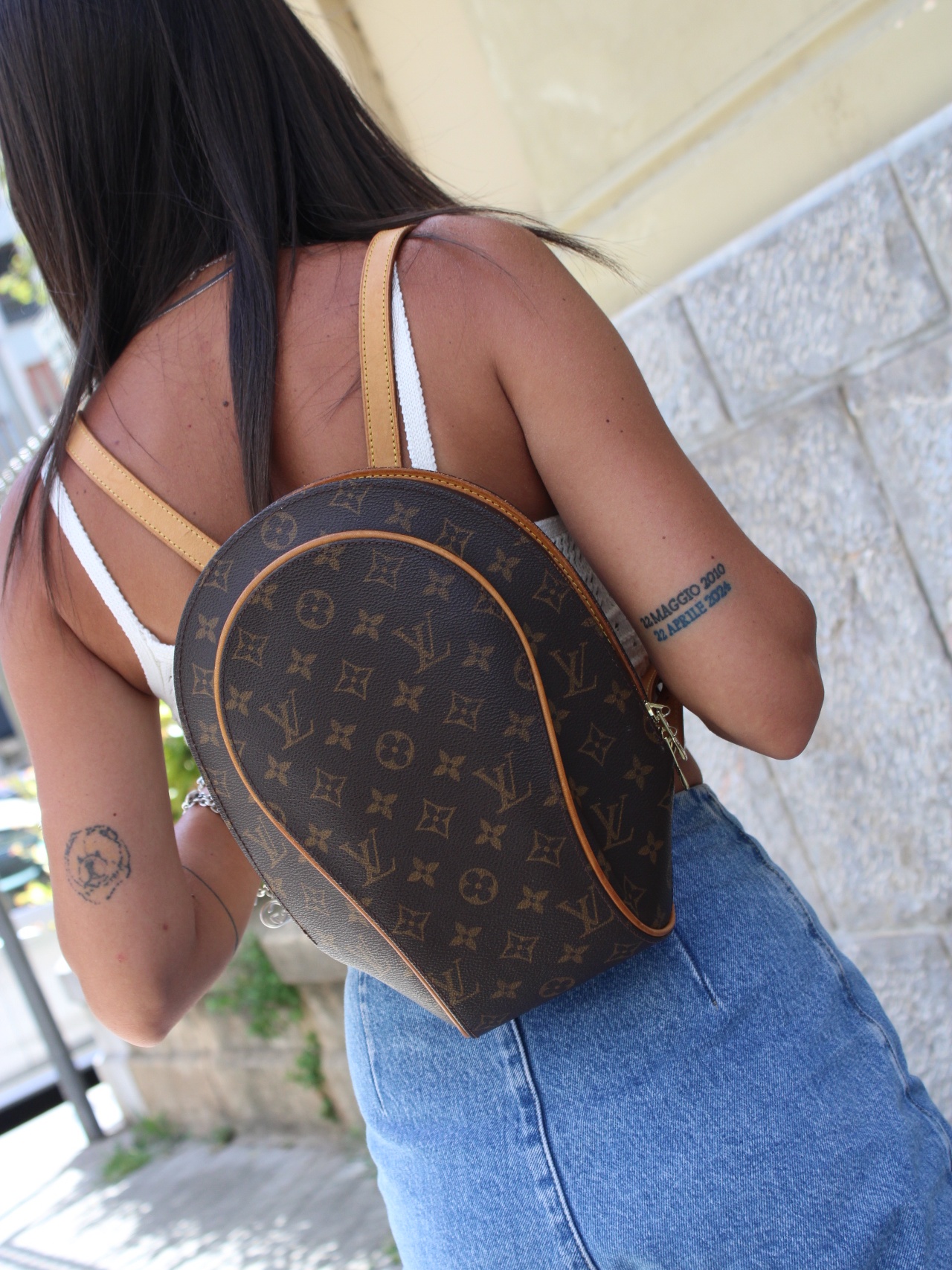 Zaino Ellipse Louis Vuitton in monogram e parti metalliche dorate. Da portare comodamente tutti i giorni con outfit sia casual che ricercati. Articolo in condizioni eccellenti con dust bag.